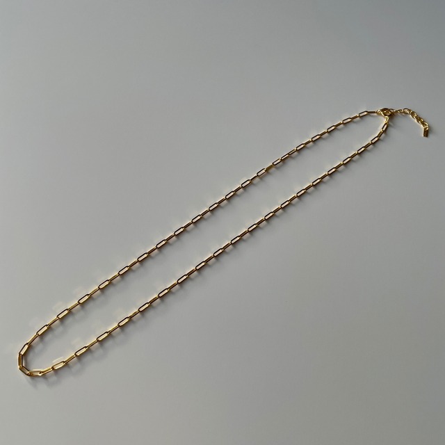 少しエッジのきいた女性らしくなりすぎない雰囲気のネックレス。 Sサイズよりもチェーンが大きく抜け感があり、Tシャツやニットに合わせていたただきたいアイテムです。 写真4枚目はSサイズとの比較となります。 こちらの商品はsilver925素材を使用しております。 無垢なシルバーの時間の経過に伴い変化する風合いをお楽しみください。 color:gold size:全長42cm、幅約2mm material:16k gold plated silver925 全て平置きで採寸しております。 測る位置によって1〜2ミリの差が生じる場合がございます。 モニターの環境や撮影時の照明によって実物と多少色合いが異なる場合がございます。 素材の特性上、強く折り曲げますと破損に繋がり兼ねますのでご注意下さい。