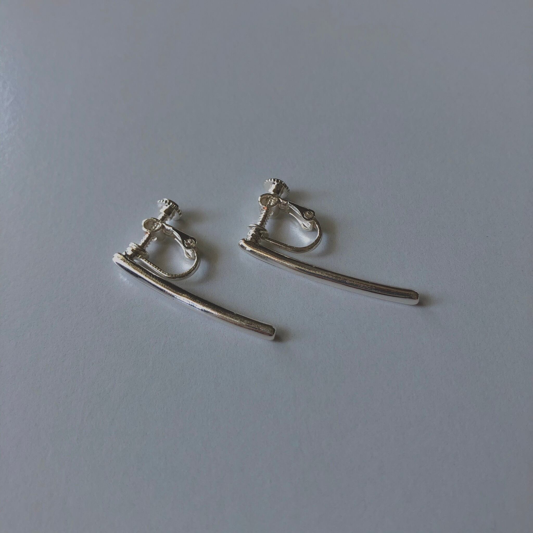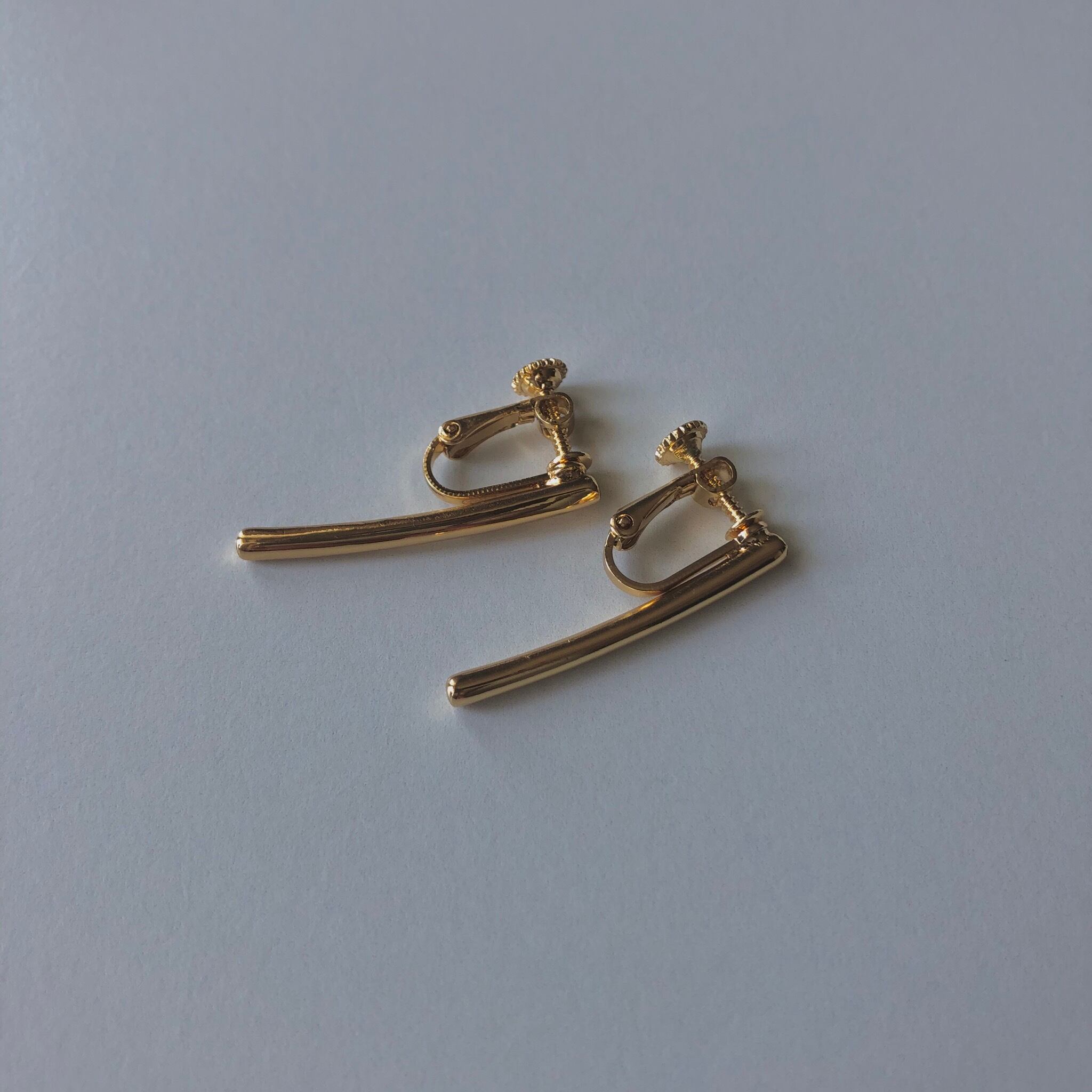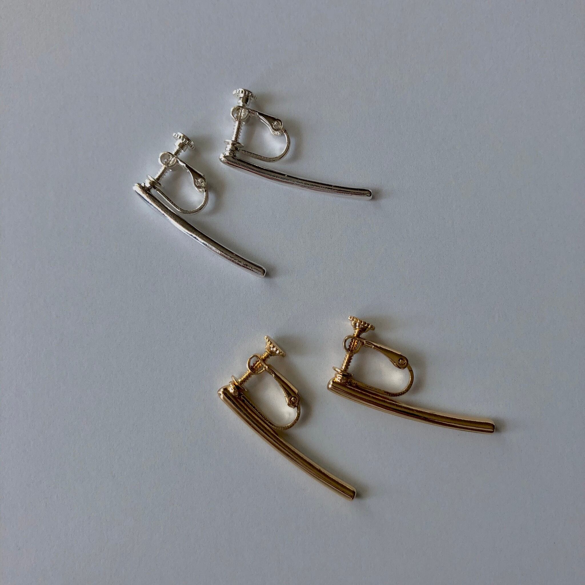 細めのバーがポイントのシンプルなイヤリング。オフィススタイルにもぜひ。