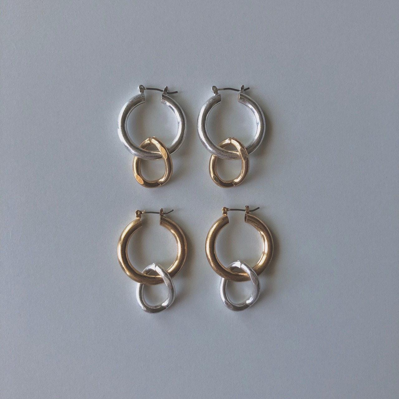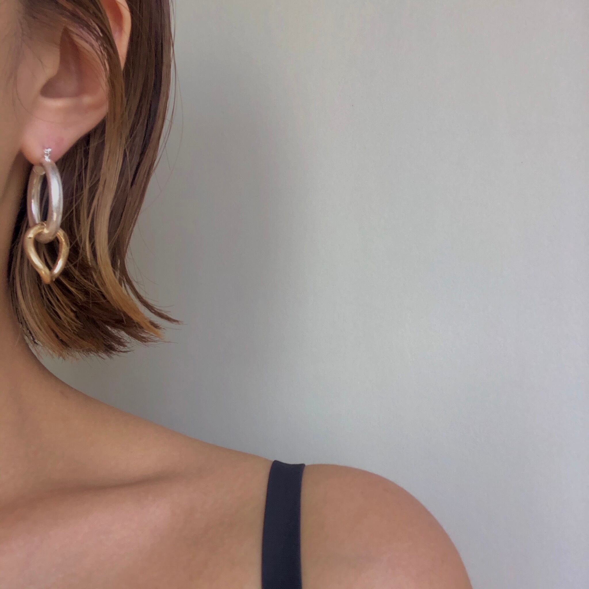 マットな質感のゴールド×シルバーの組み合わせがそれぞれ違う表情のピアス。