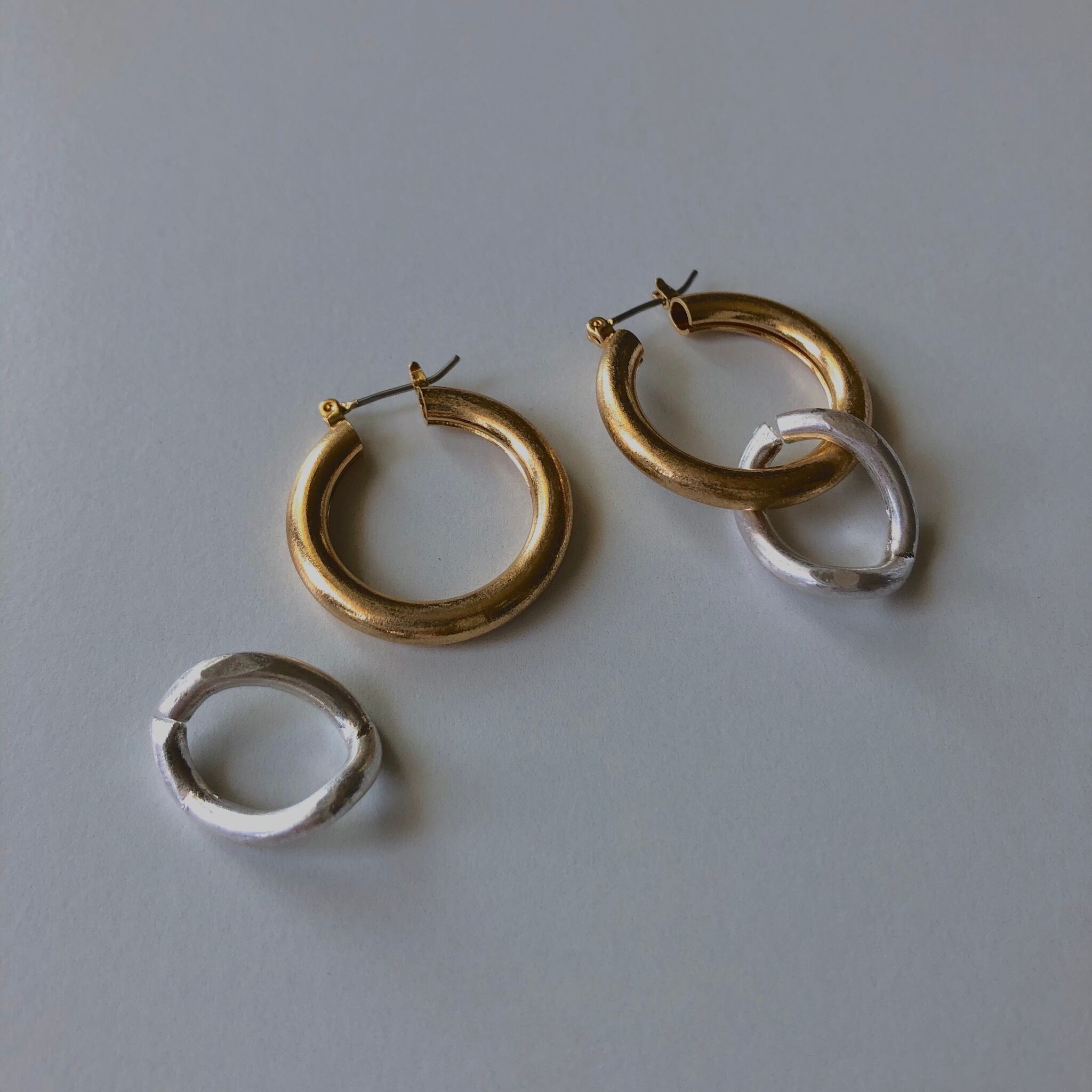 下のリングを外すことでシンプルなフープピアスとしてのご着用も可能です。