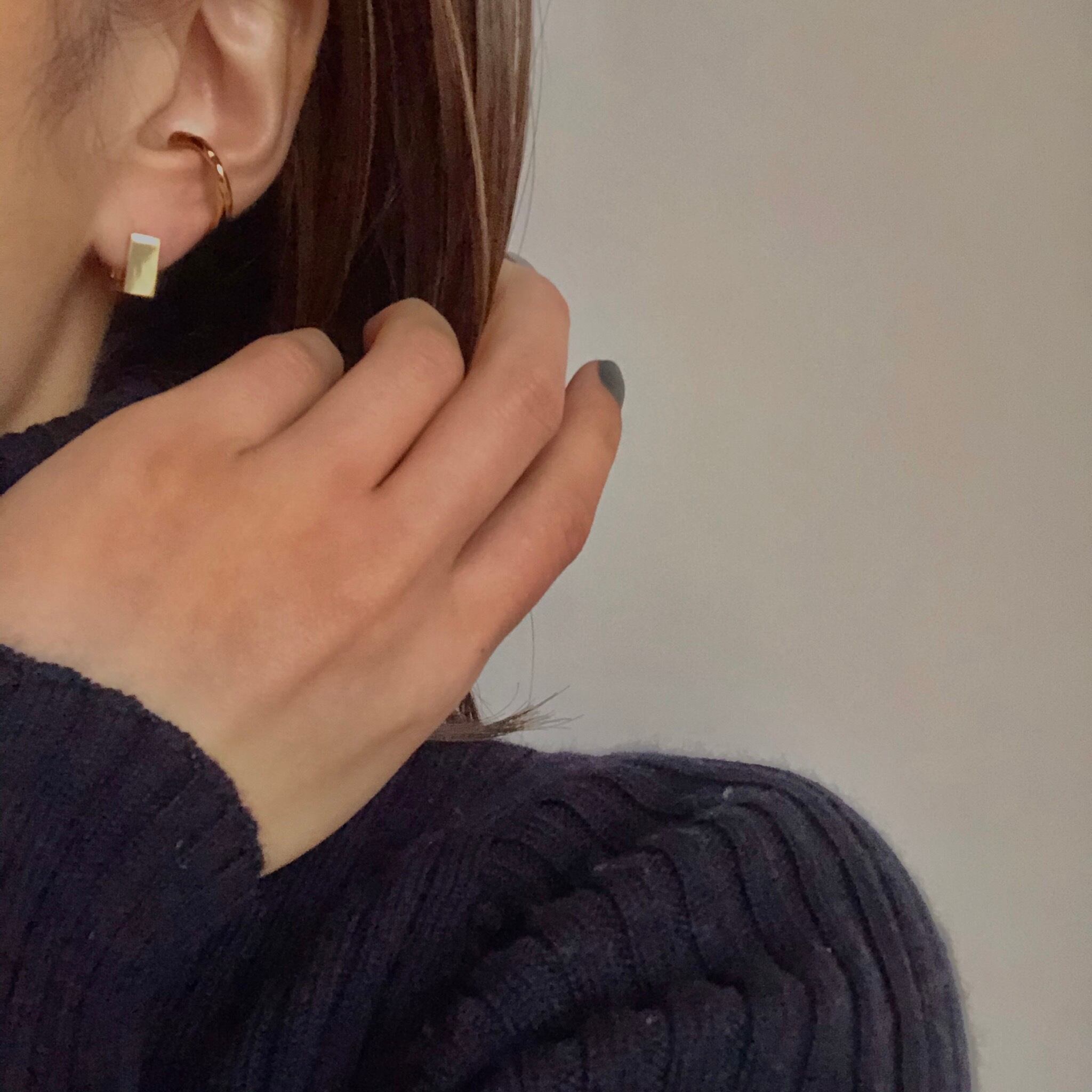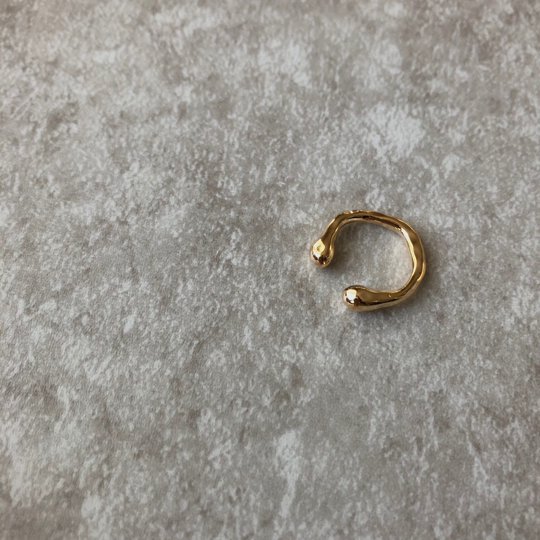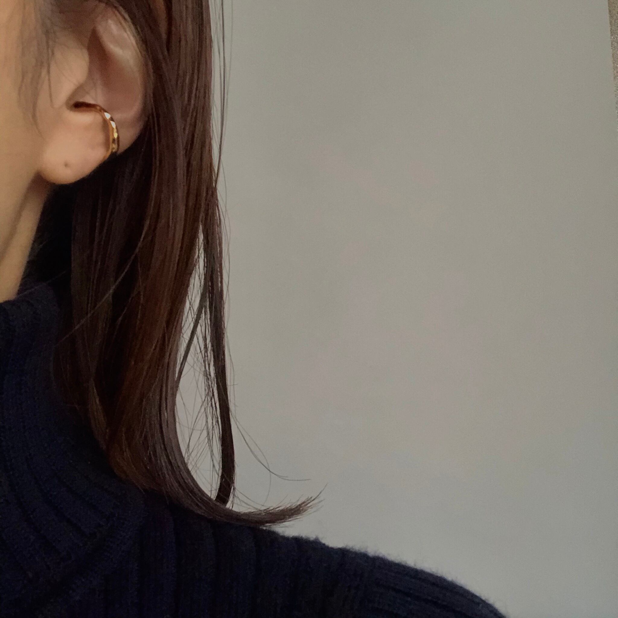 表面にニュアンスを施したイヤーカフ。クセないデザインでお手持ちのピアスやイヤリングとも合わせやすいアイテムです。