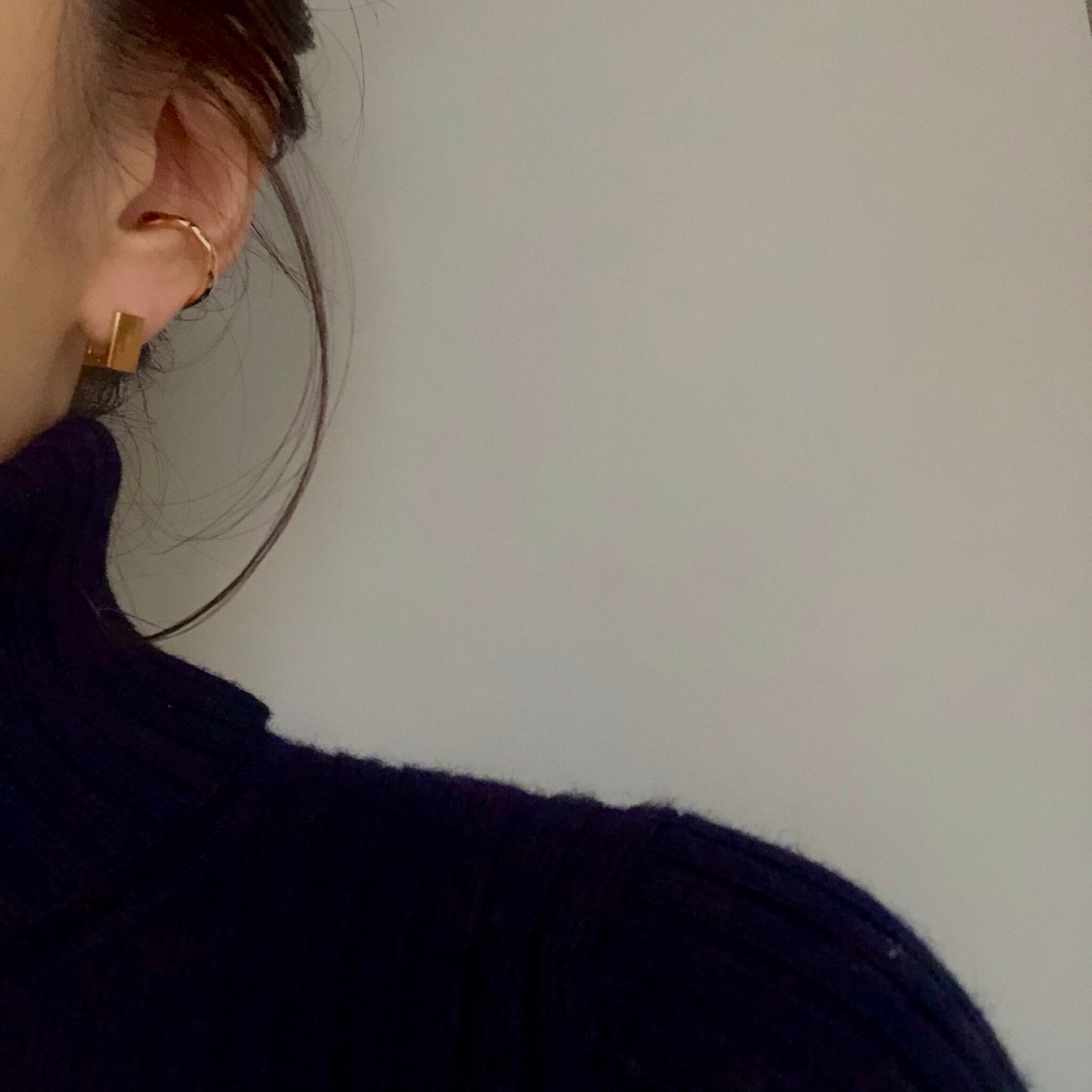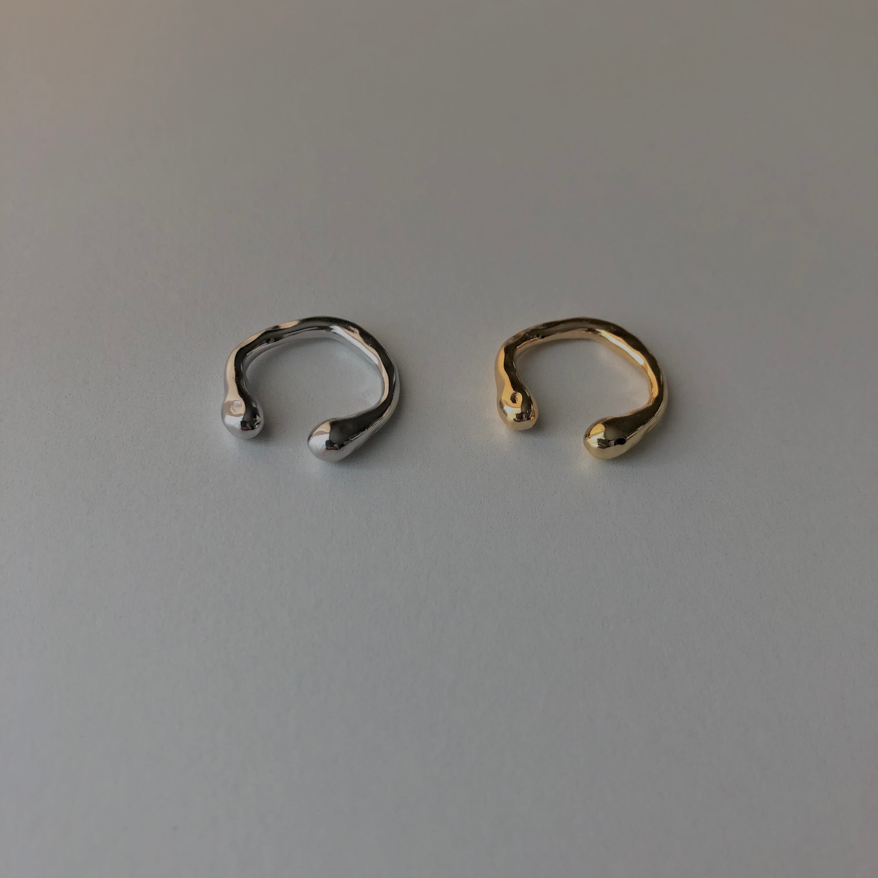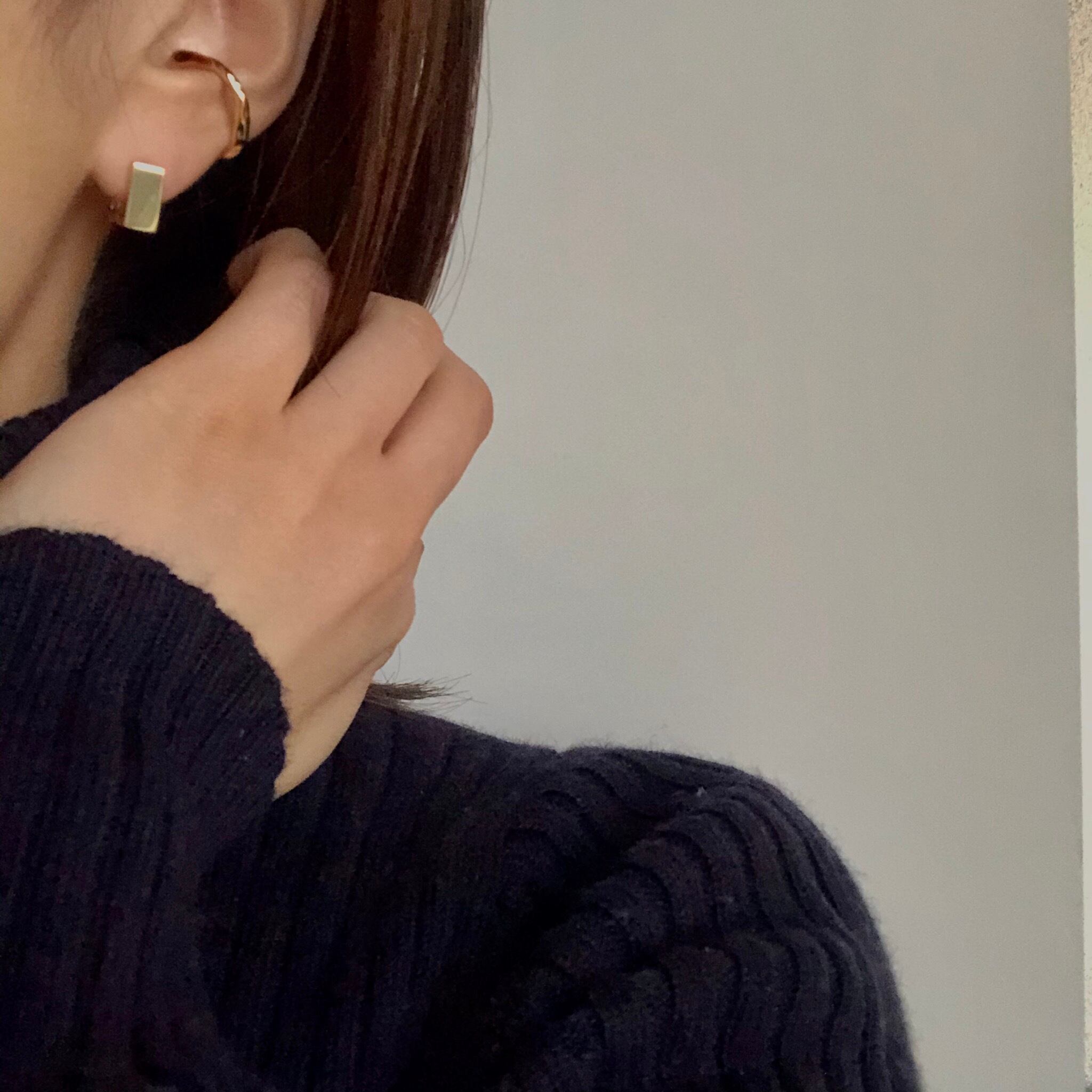 表面にニュアンスを施したイヤーカフ。クセないデザインでお手持ちのピアスやイヤリングとも合わせやすいアイテムです。