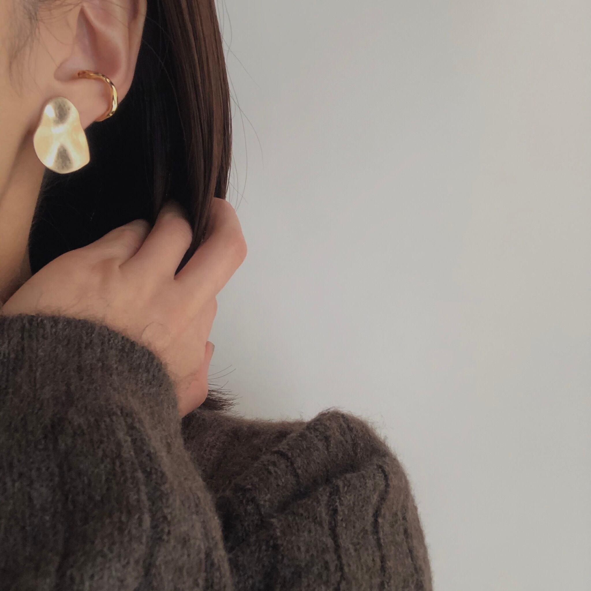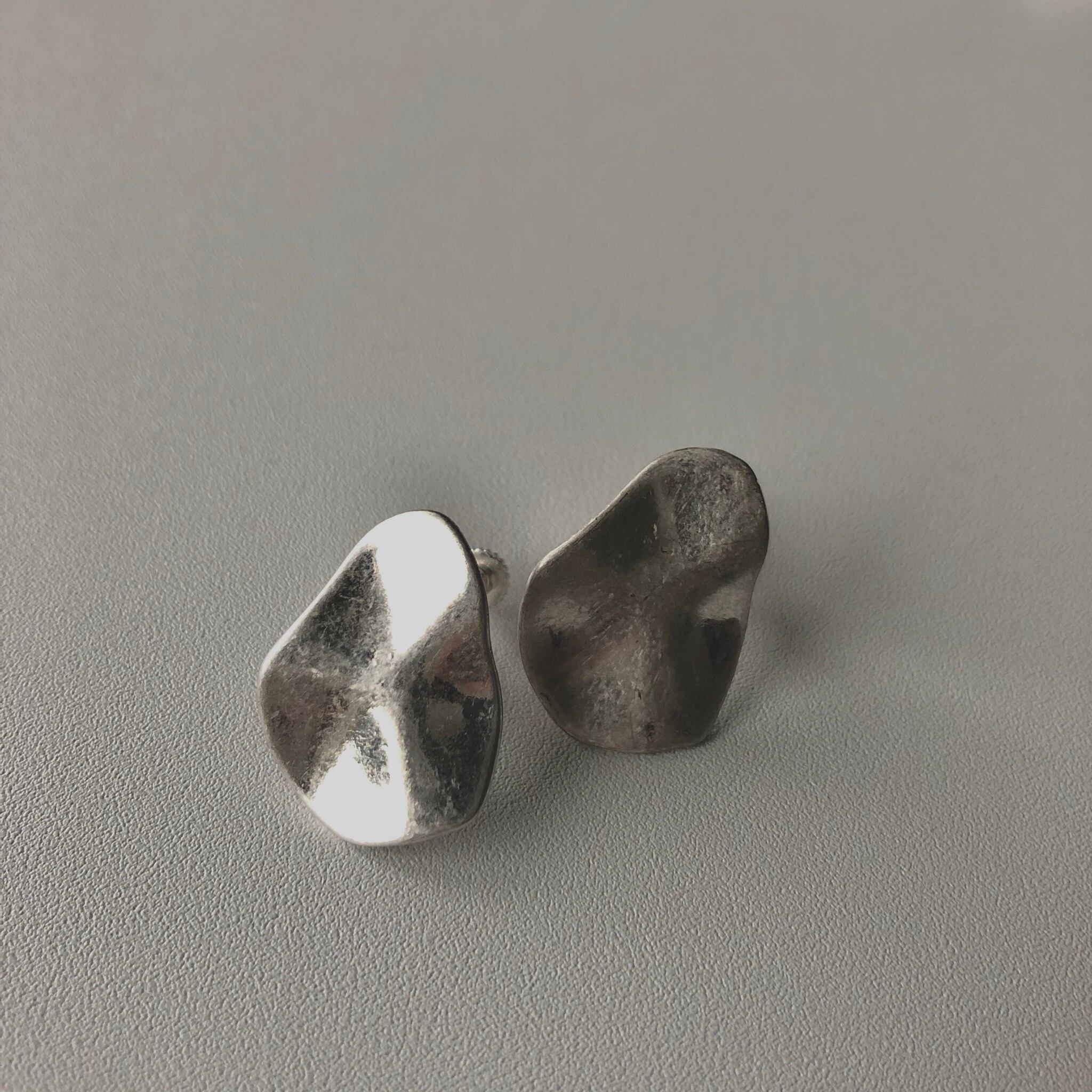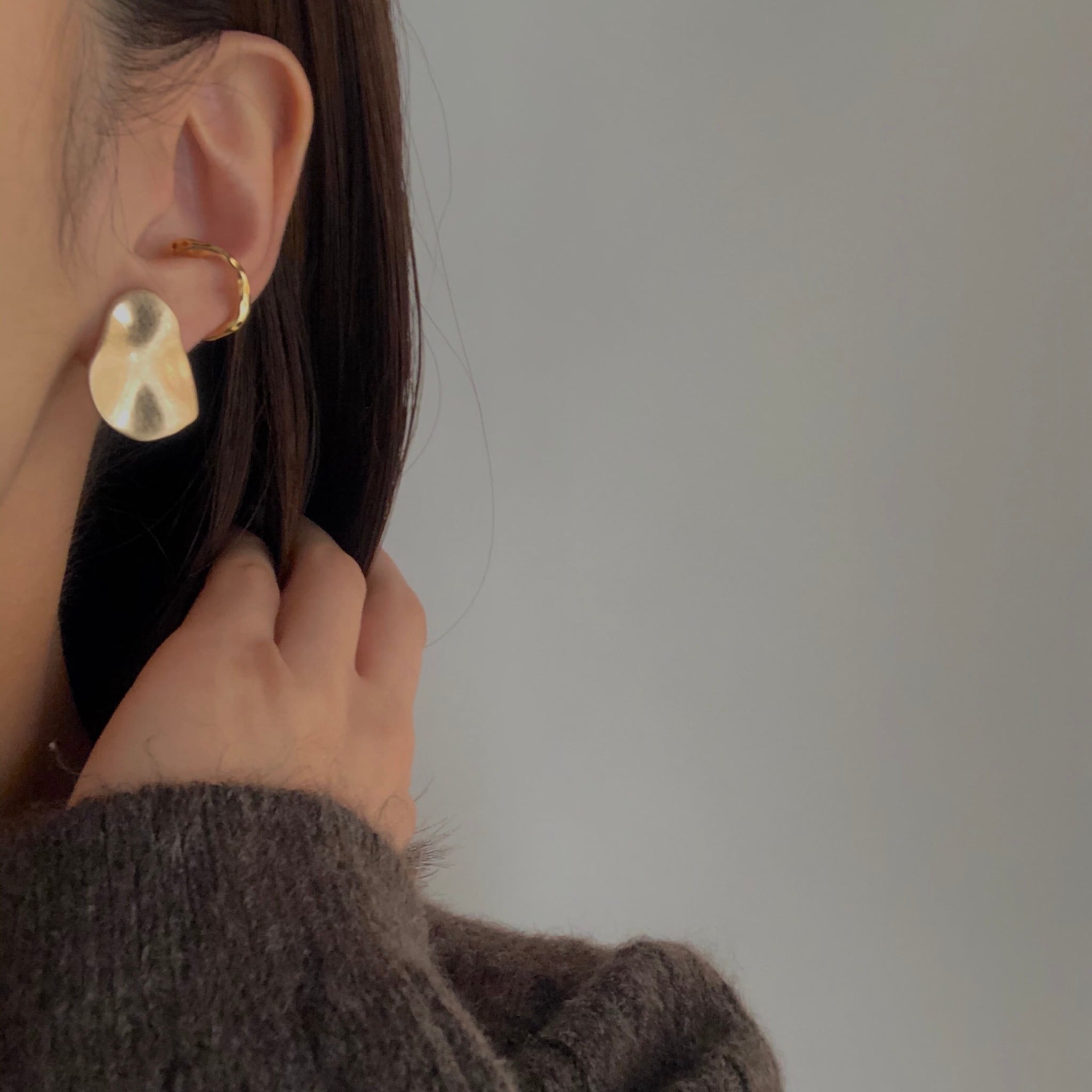 表面に緩いウェーブをつけたプレートタイプのイヤリング☺︎