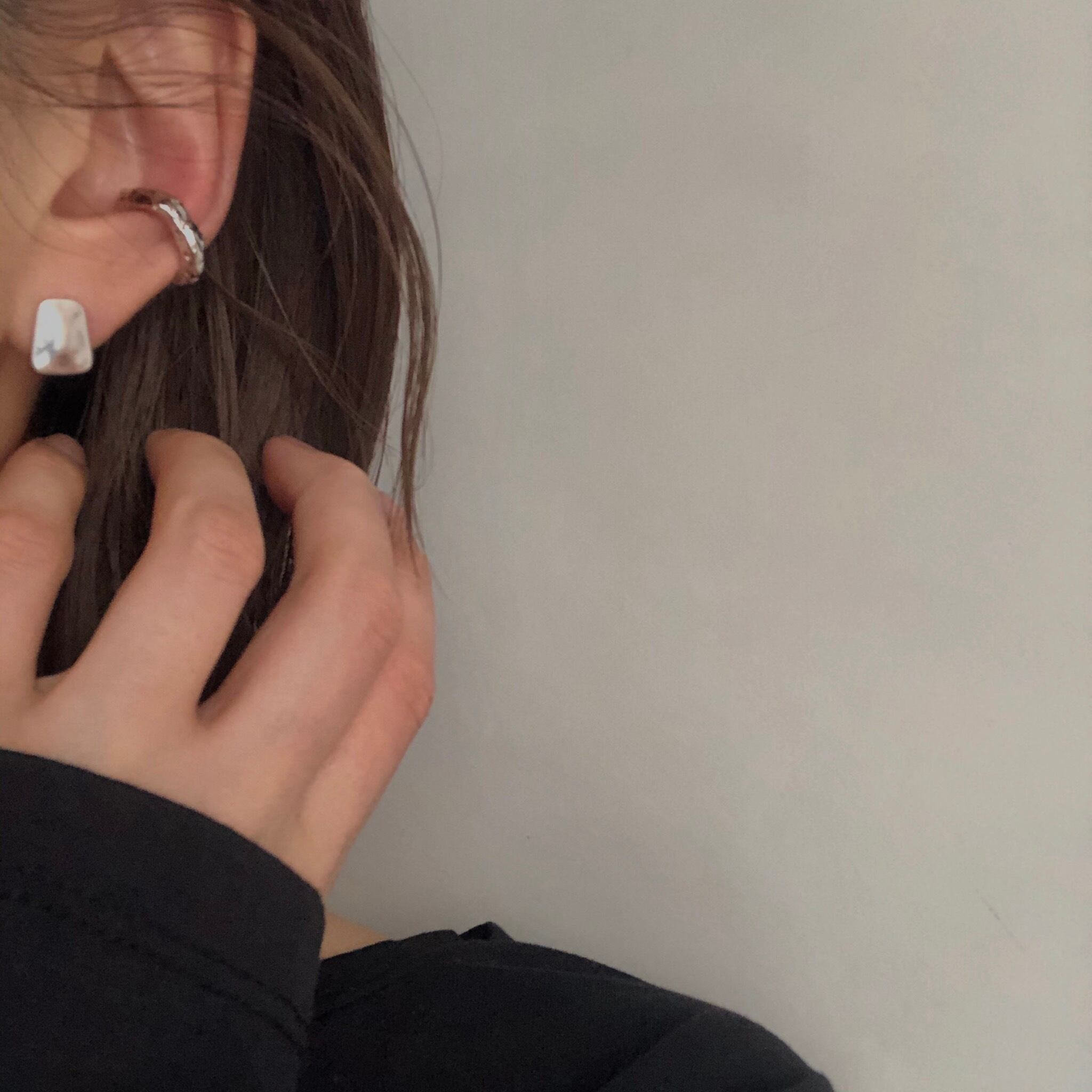 シンプルながらも絶妙なテクスチャーが自然体できれい目になり過ぎない、雰囲気を醸し出してくれるイヤーカフです。