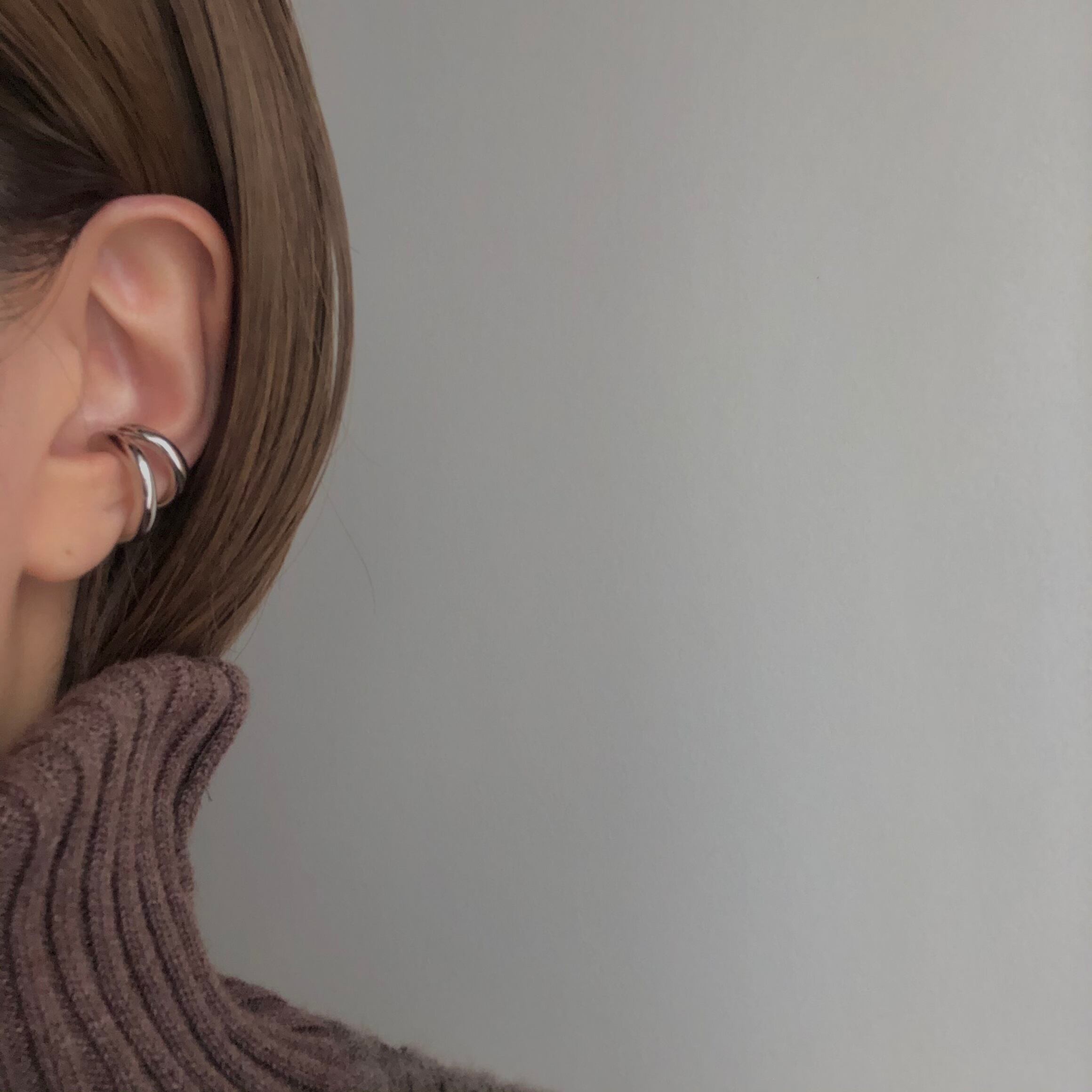 こちらのイヤカフは間隔が約5mmとなっております。耳の小さな方や薄めの方は着用が難しい場合がございます。ご購入の前にお手持ちのアイテムと比較の上ご検討いただけますと幸いです。