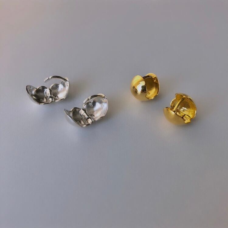 キャッチ一体型のピアスは着用時に強い力を加えますと芯が曲がり緩くなってしまう場合がございますので過度な力を加えないようにご注意いただけますと幸いでございます。また緩くなってしまった場合は少しだけ芯を上に持ち上げていただけますとしっかりと留まるようになります。※この場合強く押し上げすぎると芯が折れてしまいますのでお気を付け下さいませ。