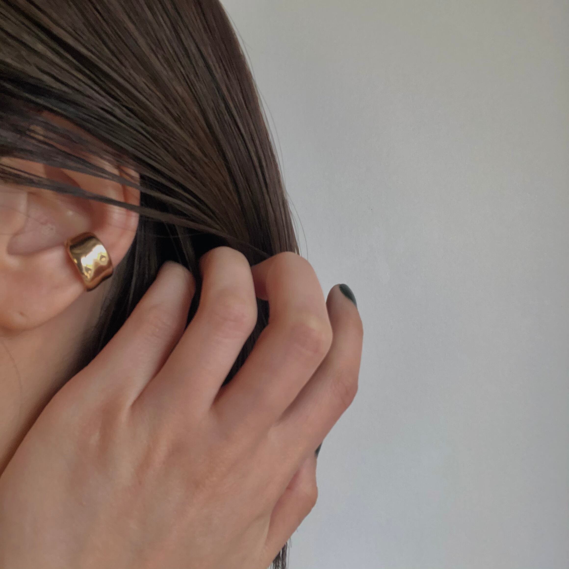 小ぶりで耳への負担なくピアスやイヤカフとの相性の良いコーディネートの広がるアイテムです。