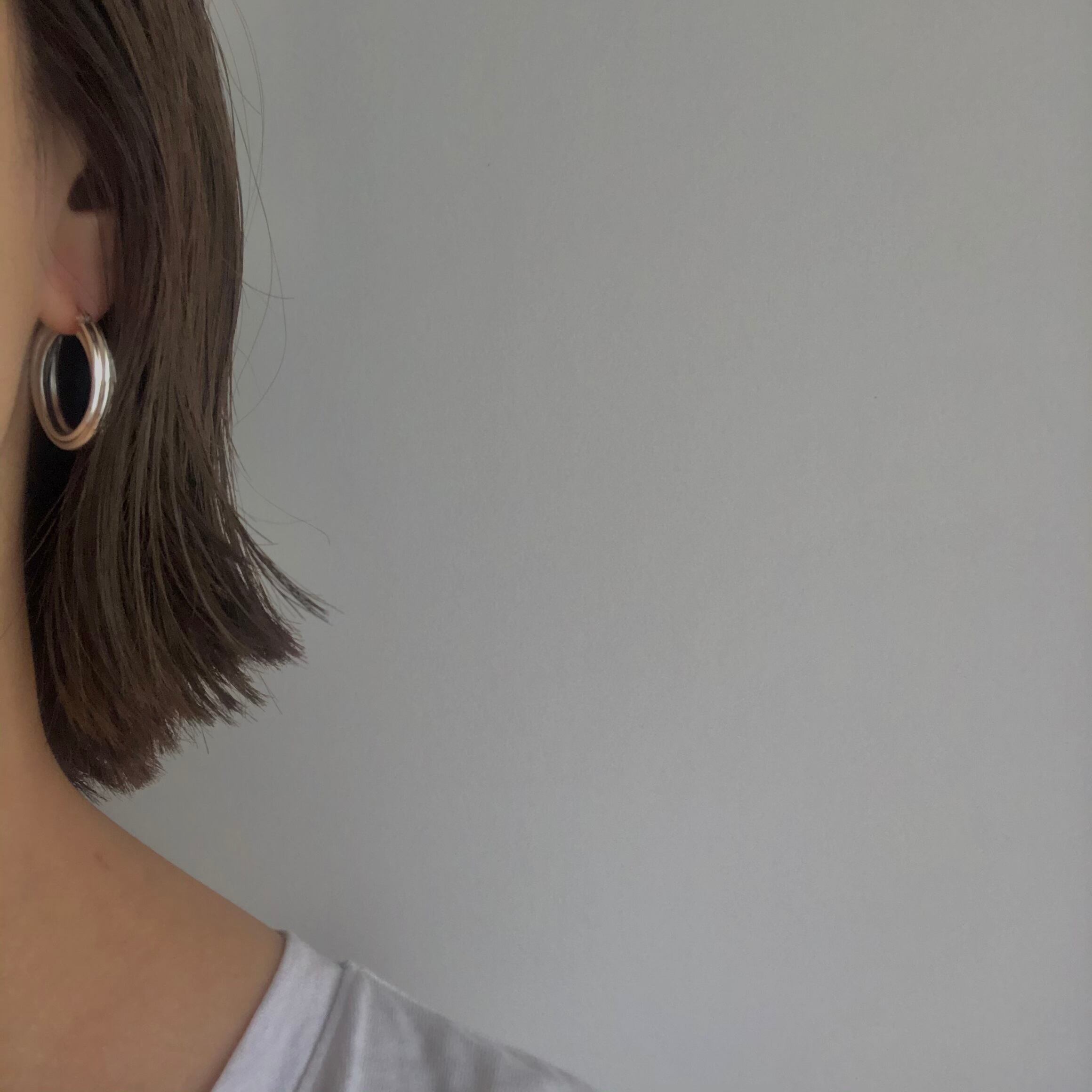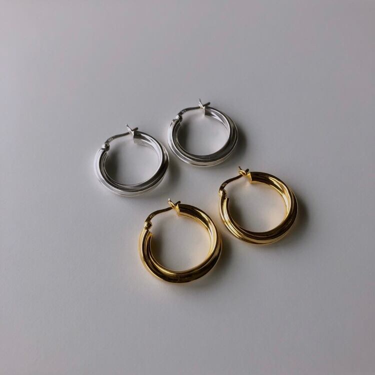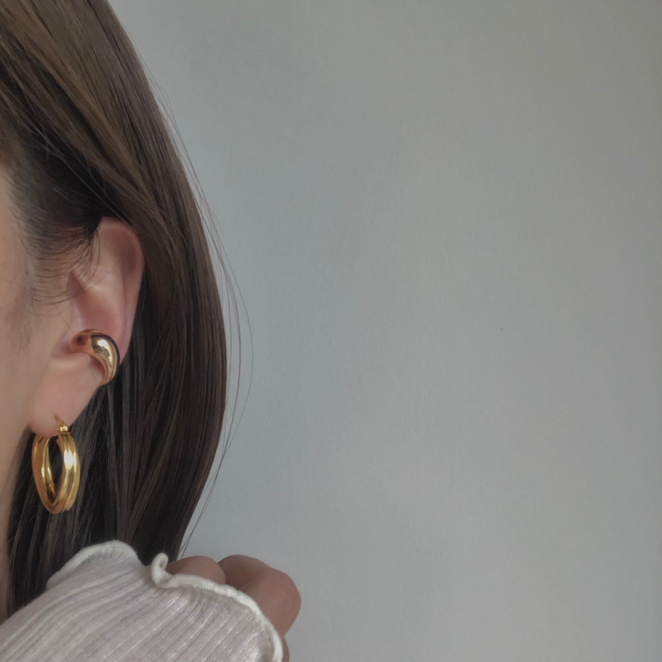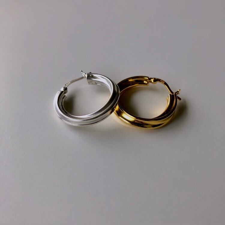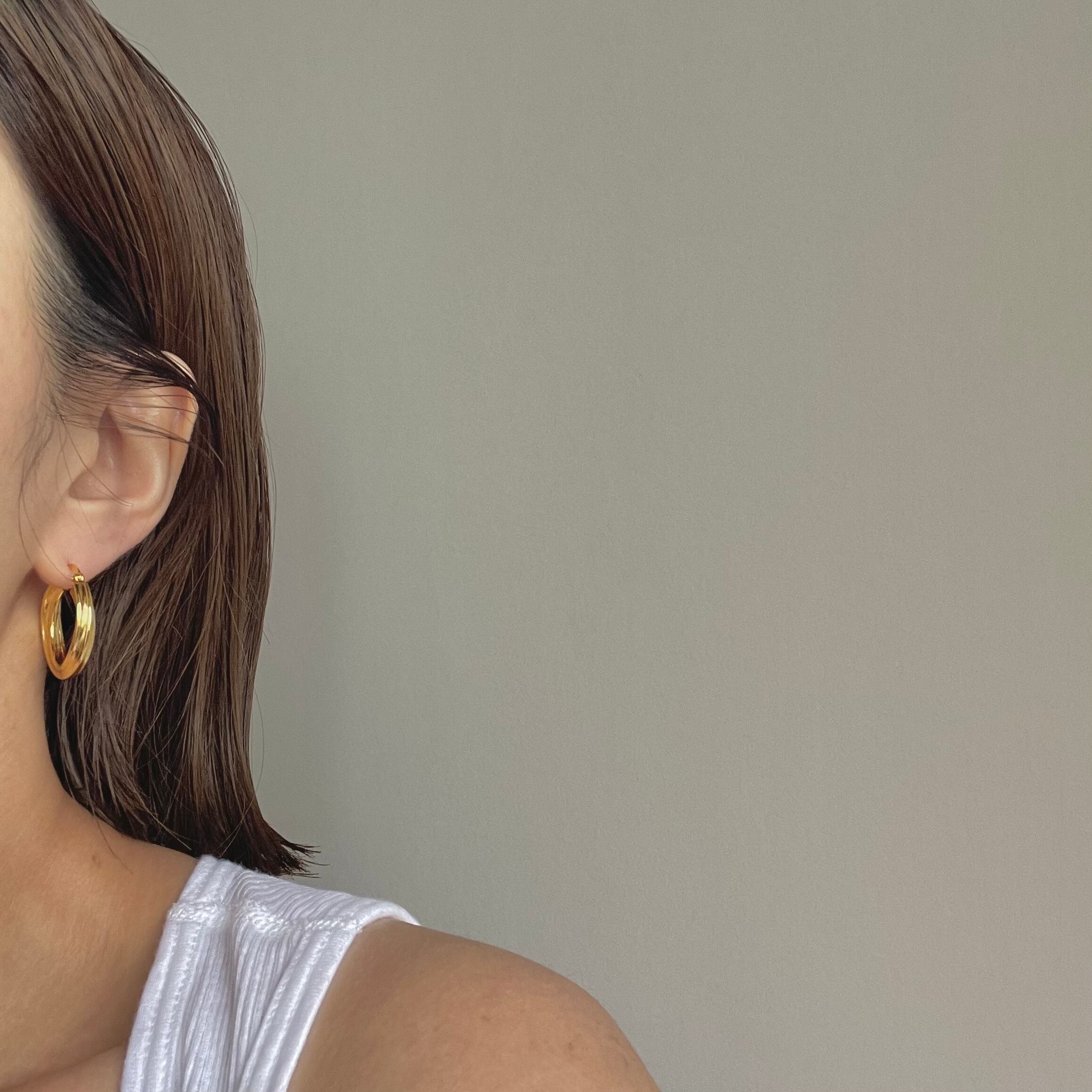 フープにねじれのラインがデザインされたピアス。少しエレガントさを追加したい時に。