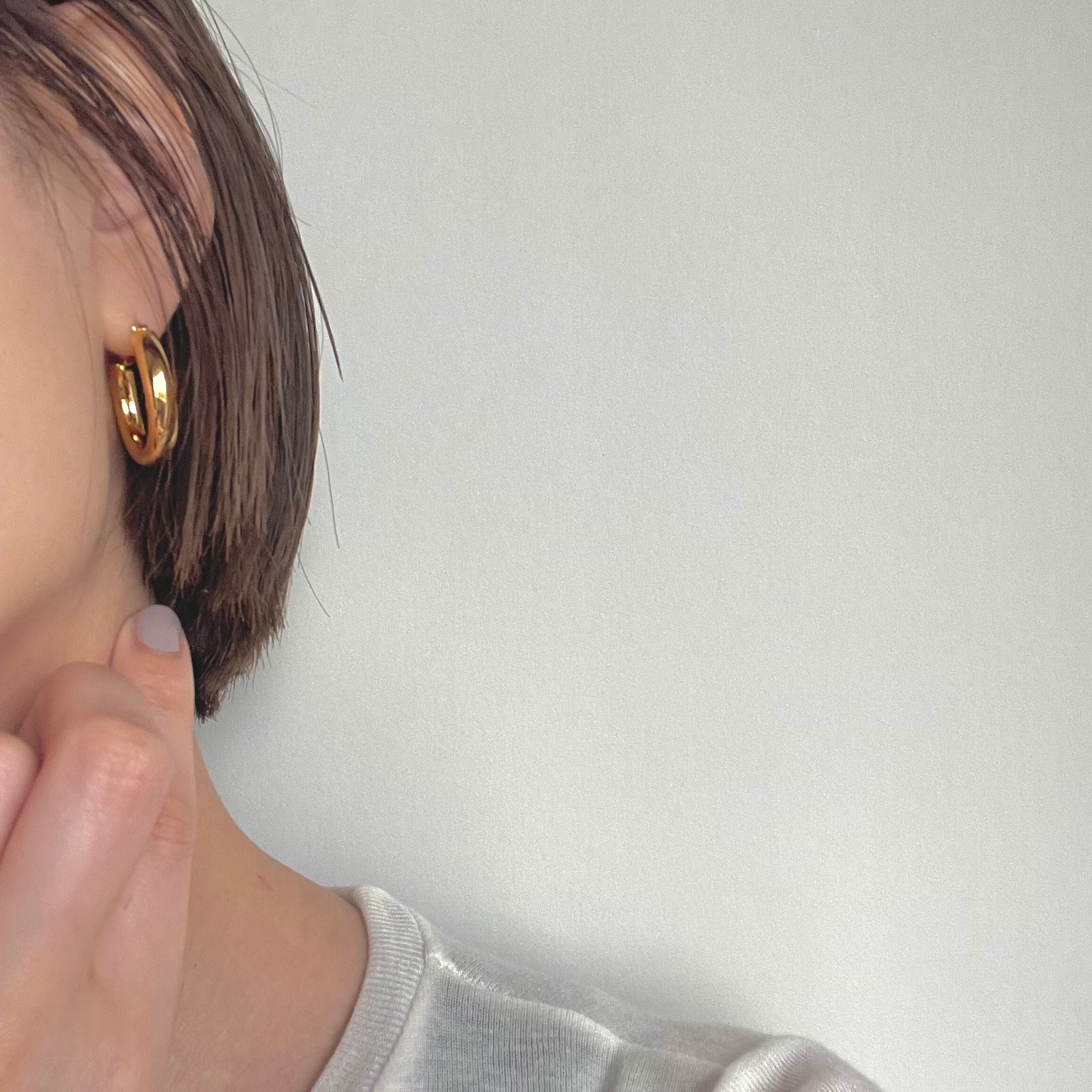 コーディネートに困った日に手に取っていただきたい万能ピアス。ジャストなサイズ感とぷっくりとしたフレーム、オンオフ問わずデイリーにご着用いただきたいアイテムです。美しいシルエットをお楽しみください。