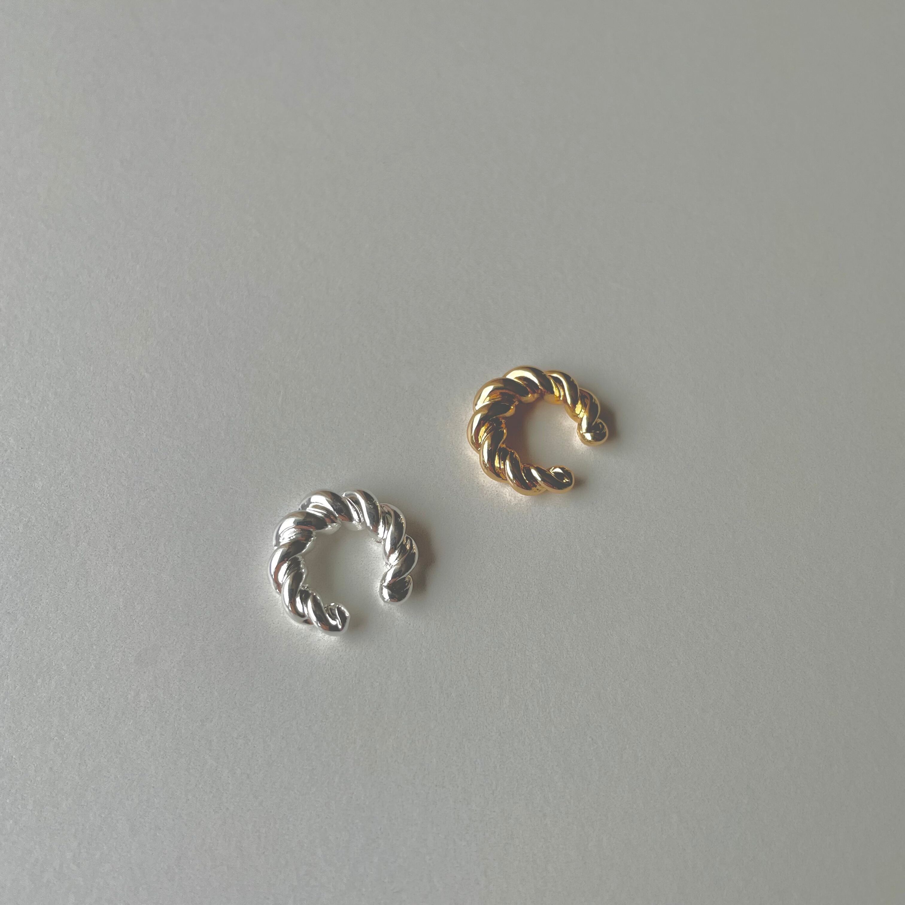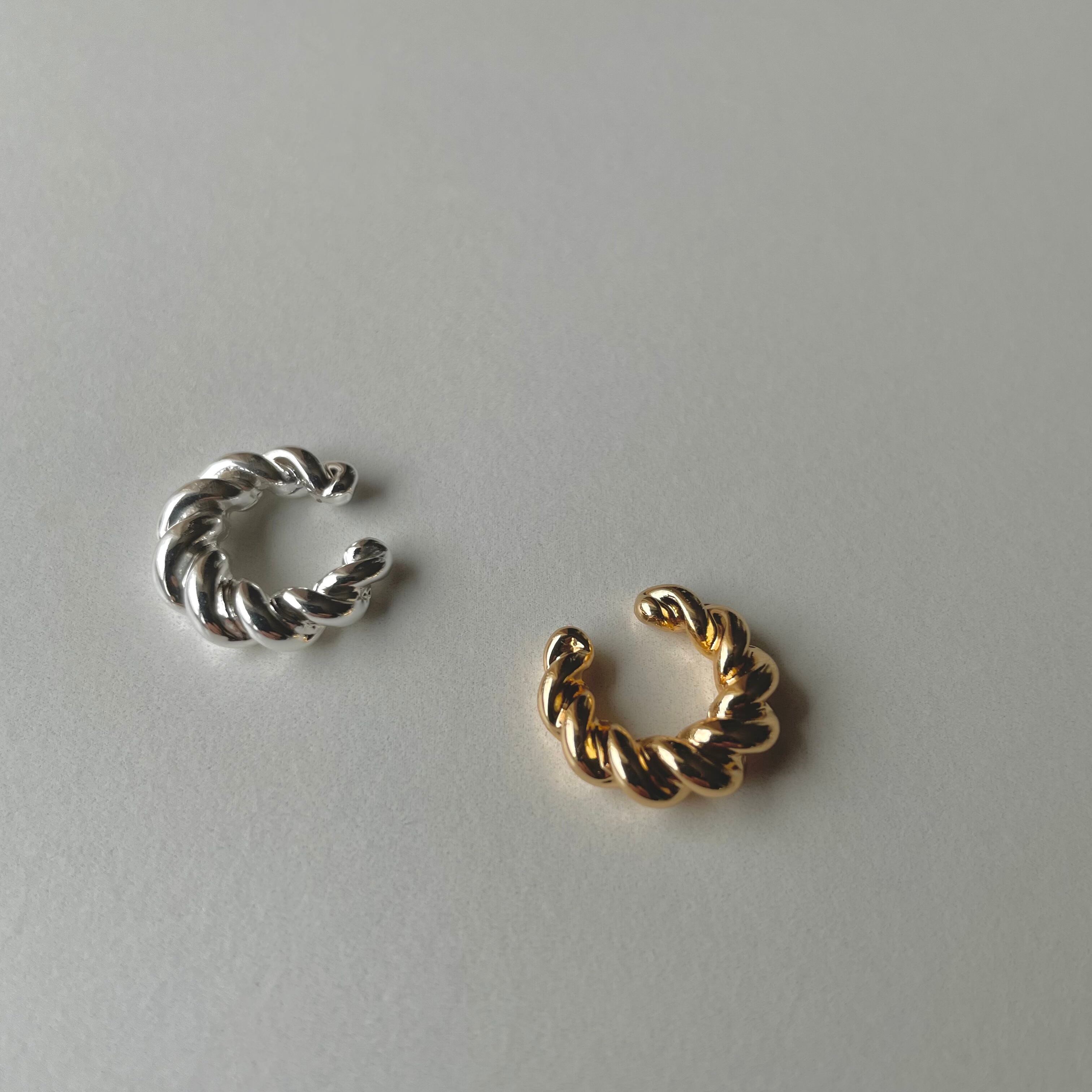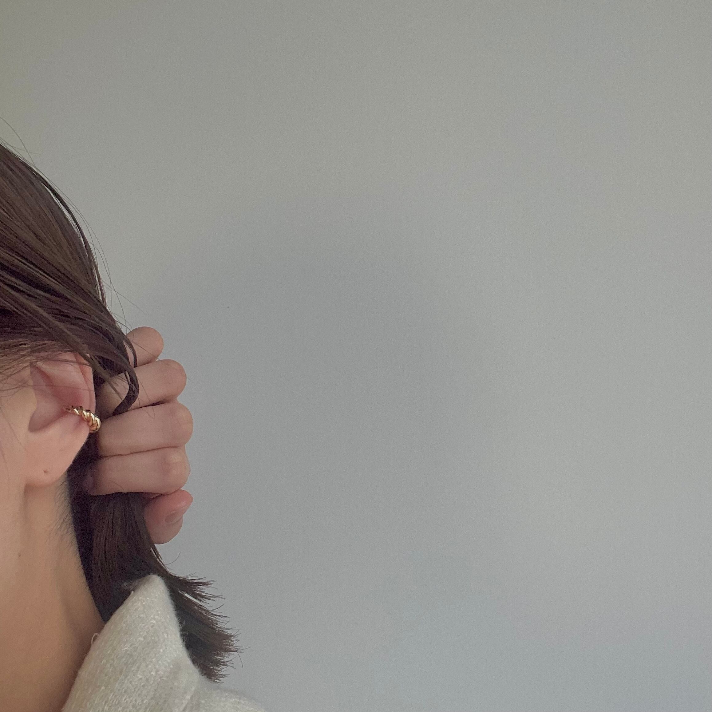 ねじれたデザインの小ぶりで上品なイヤカフ。