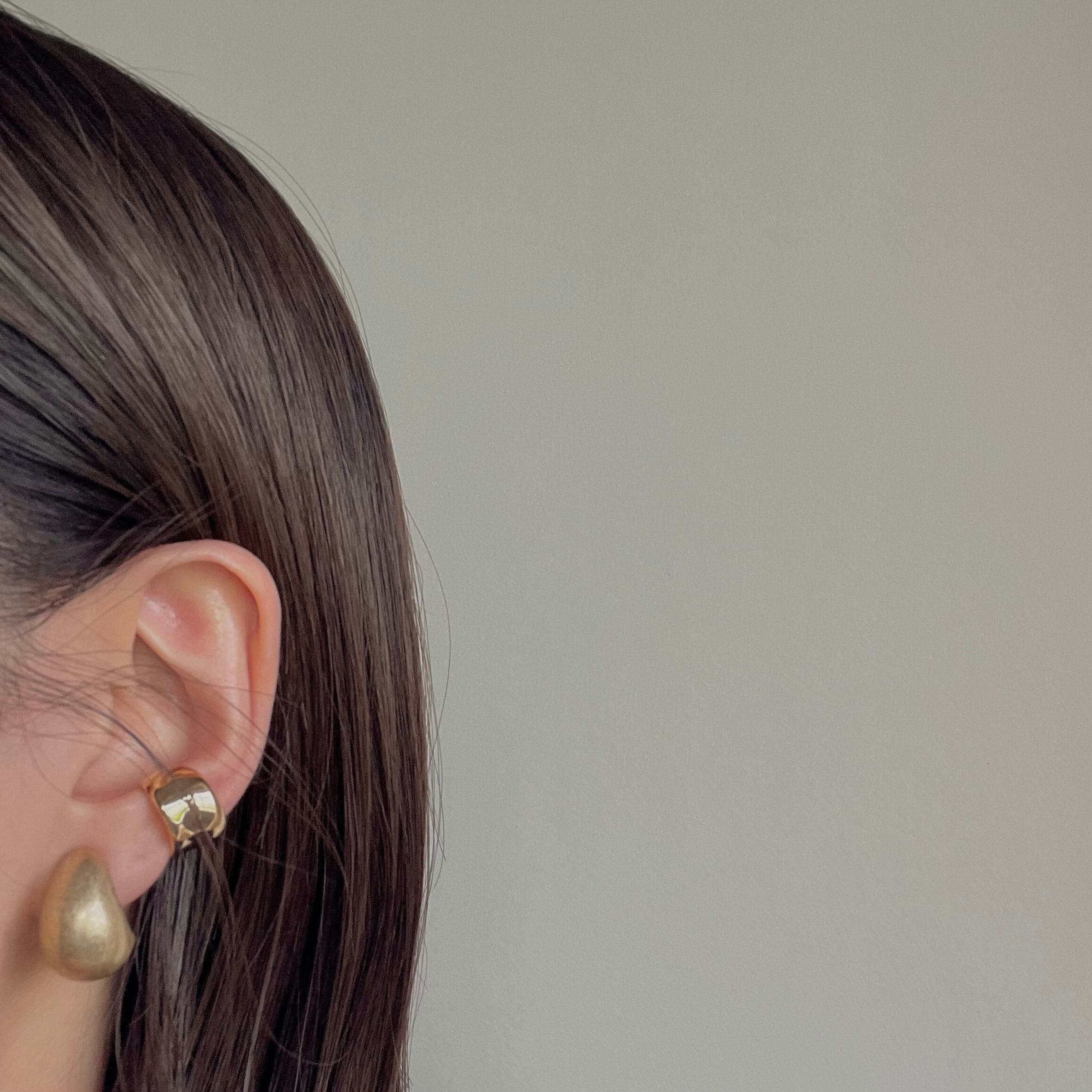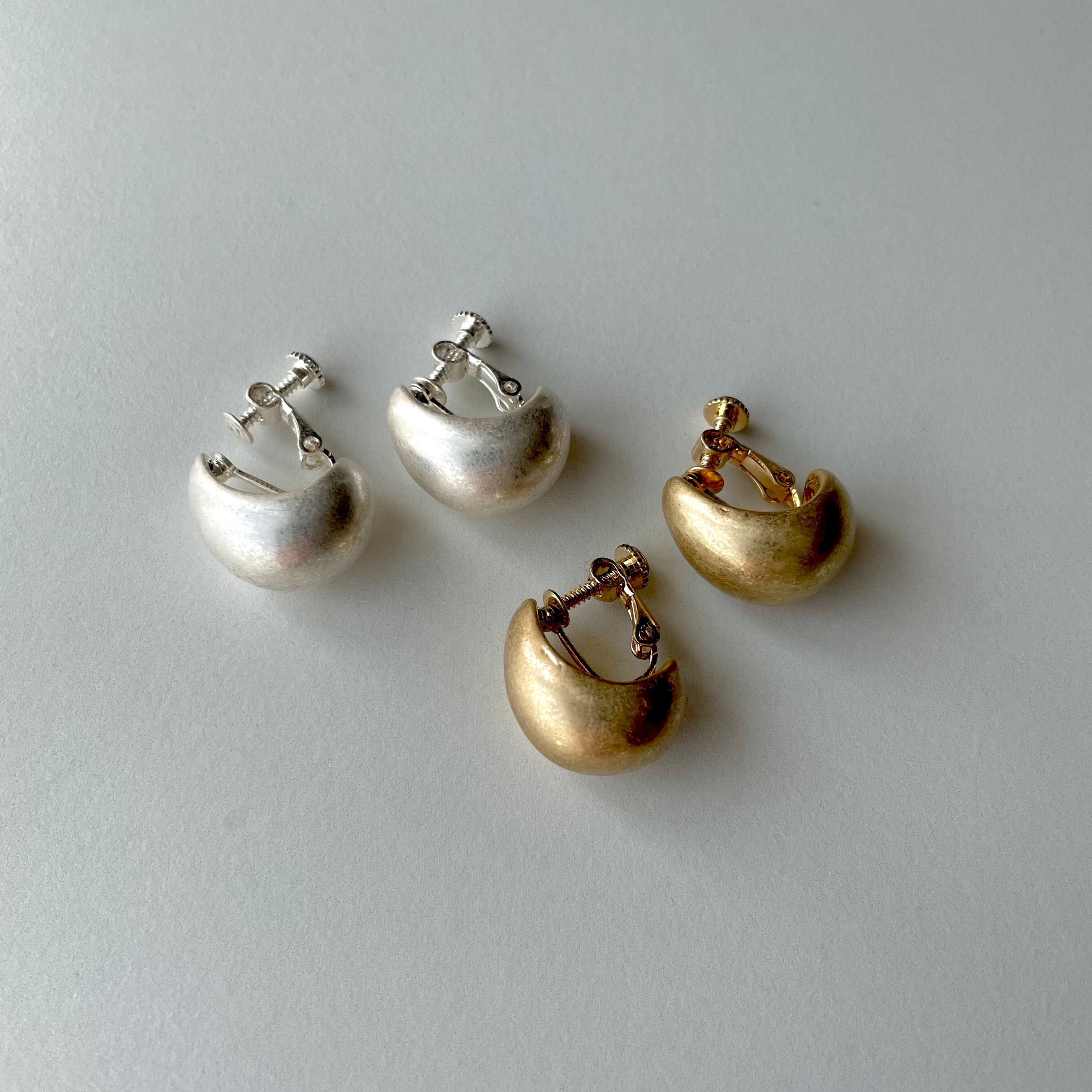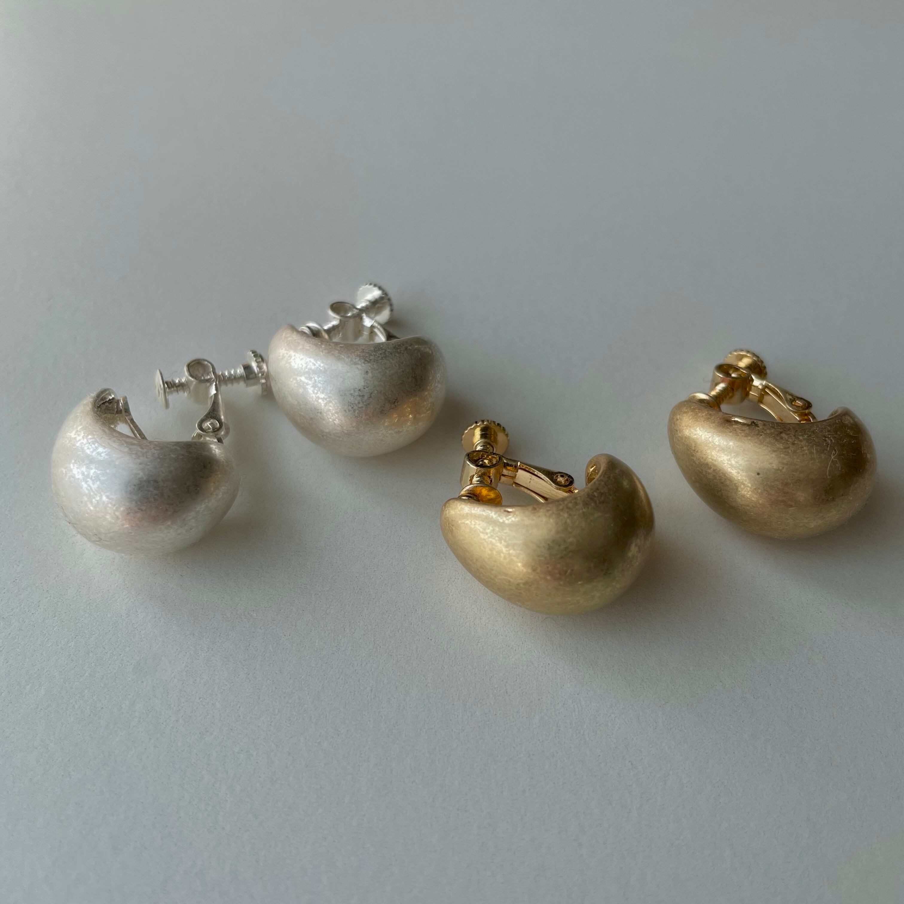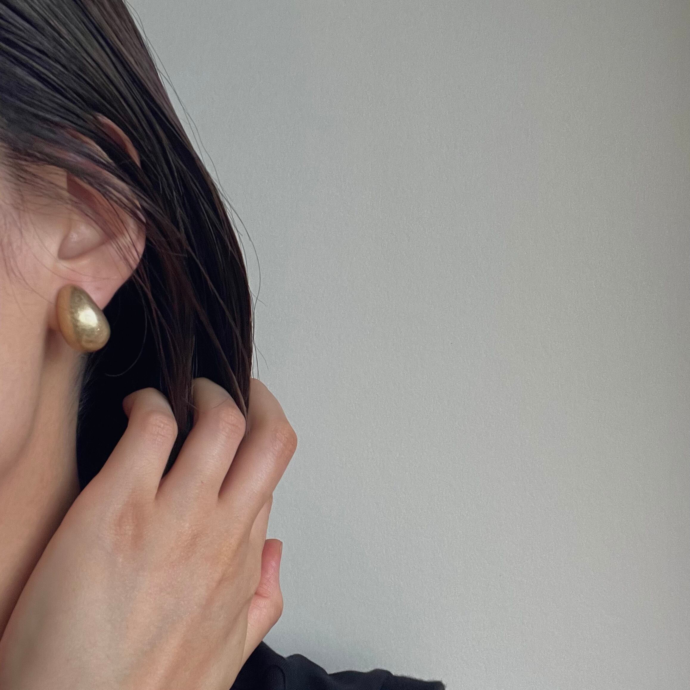 ぷっくりとした形で耳を綺麗に見せてくれるイヤリング。ファッションを選ばないシンプルデザイン。表面はマット加工が施された大人っぽい雰囲気です。