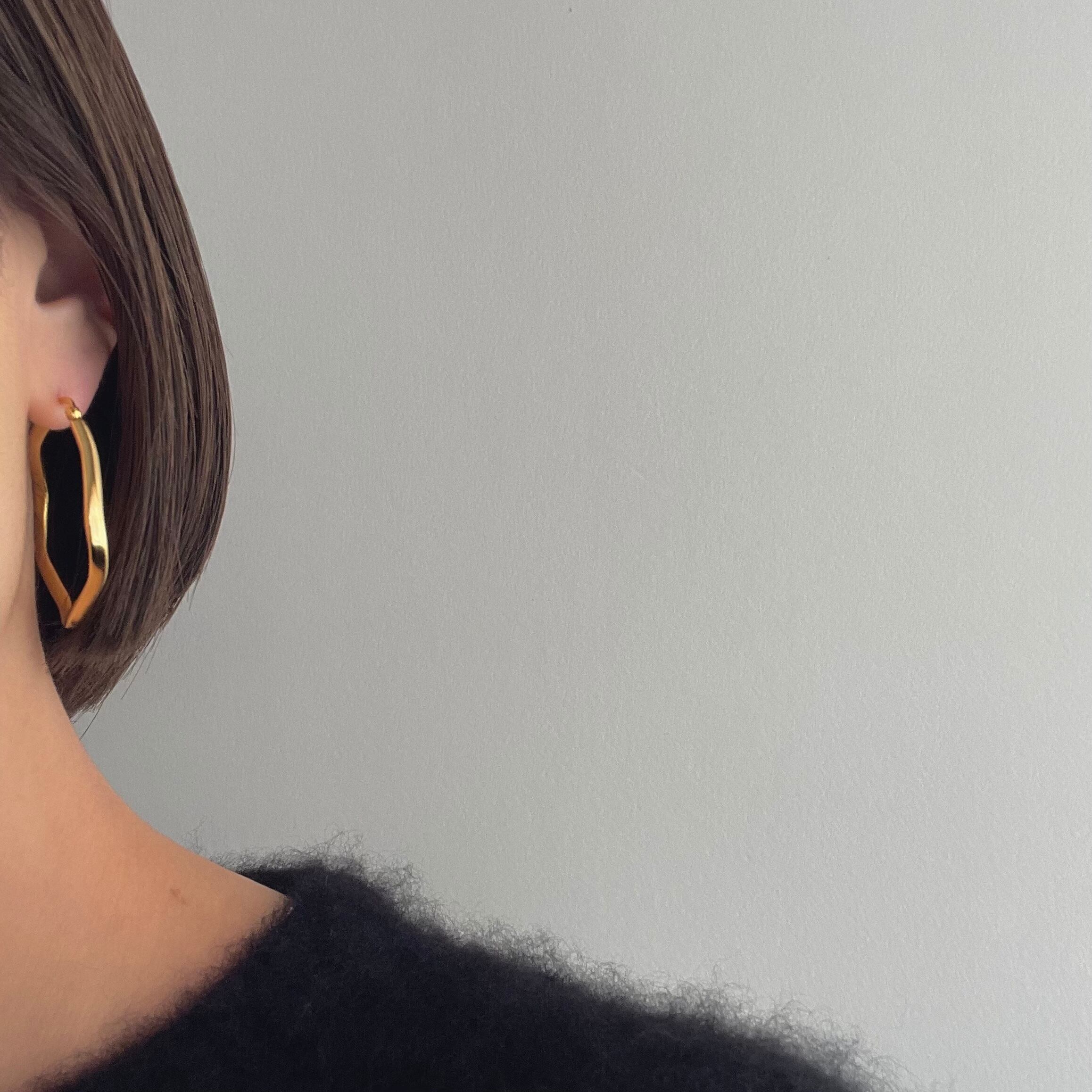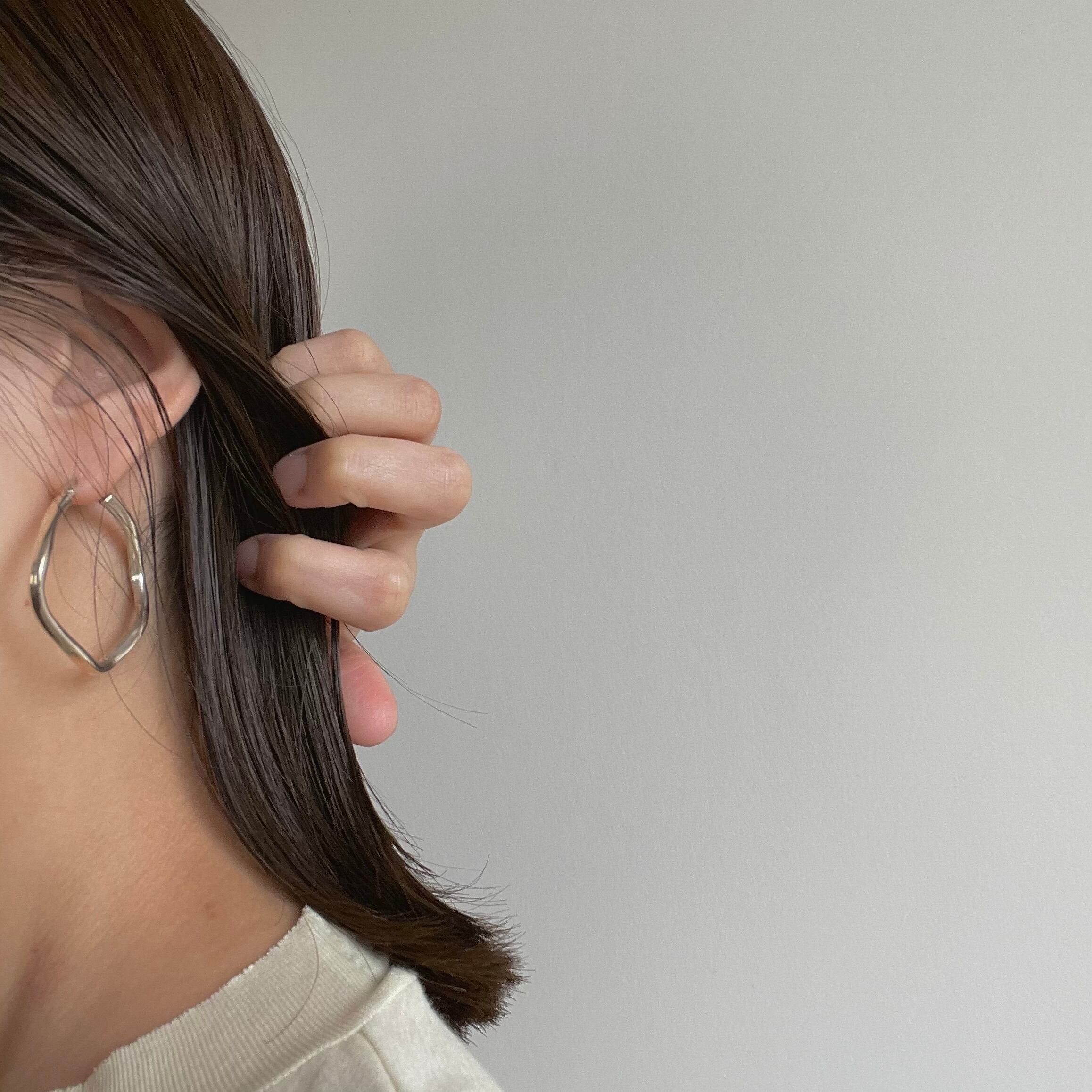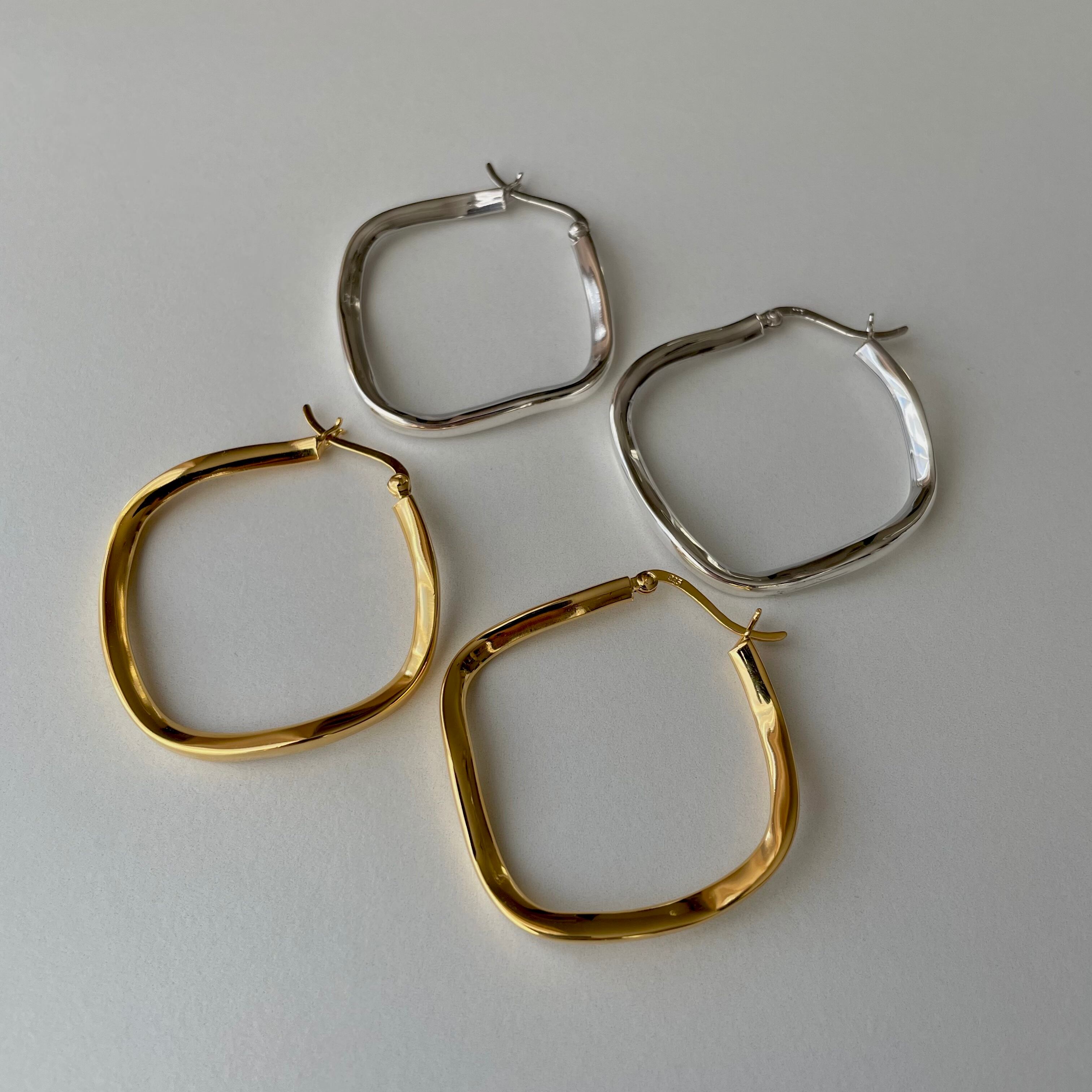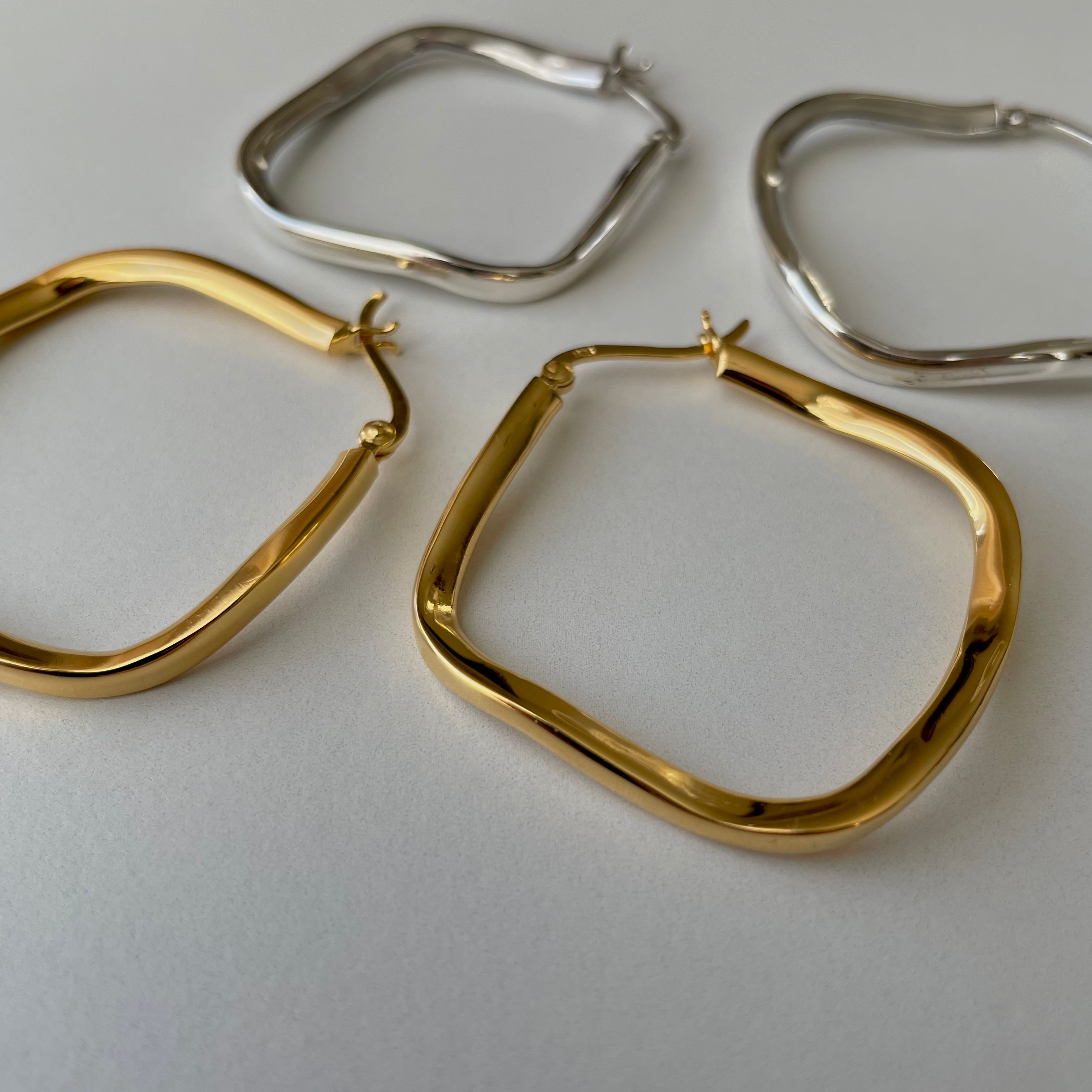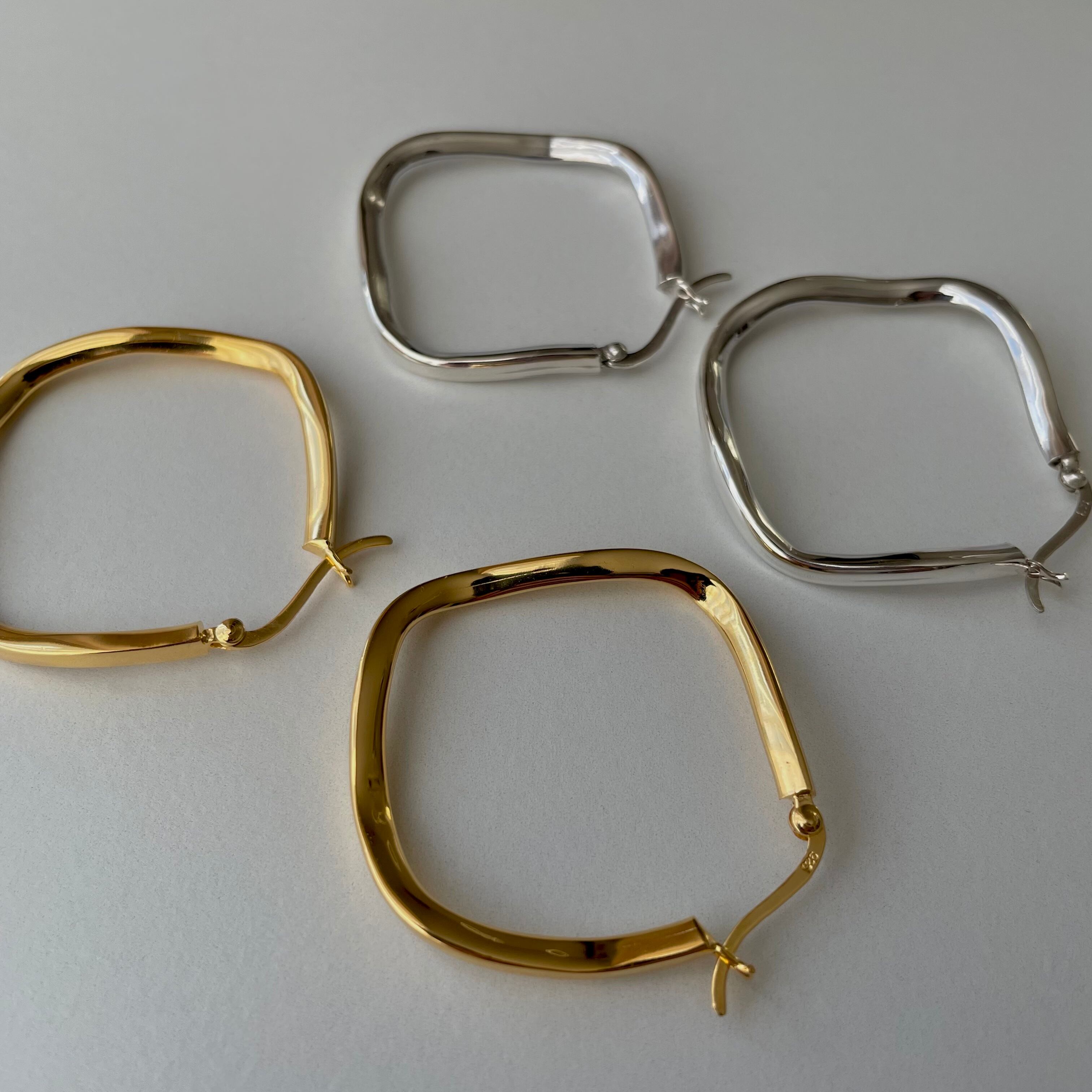 フープピアスや通常のスクエアデザインとは一味違った都会的な雰囲気。