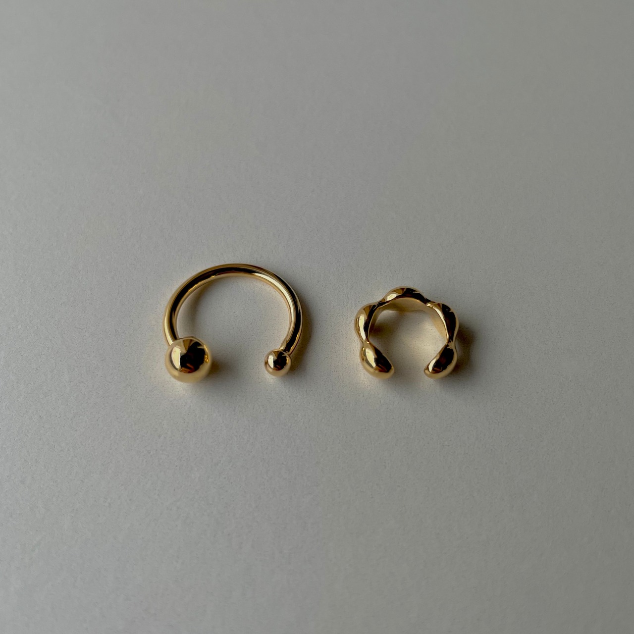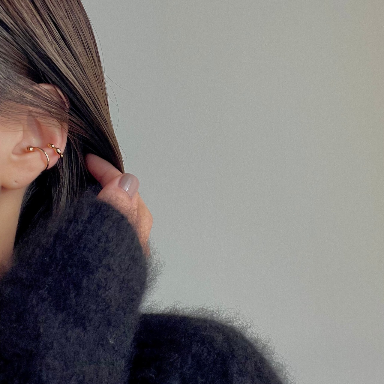 こちらのセットでの合わせももちろん、どちらもシンプルで合わせやすいアイテムですのでお手持ちのイヤカフやピアス、イヤリングと合わせたレイヤリングを是非お楽しみください。