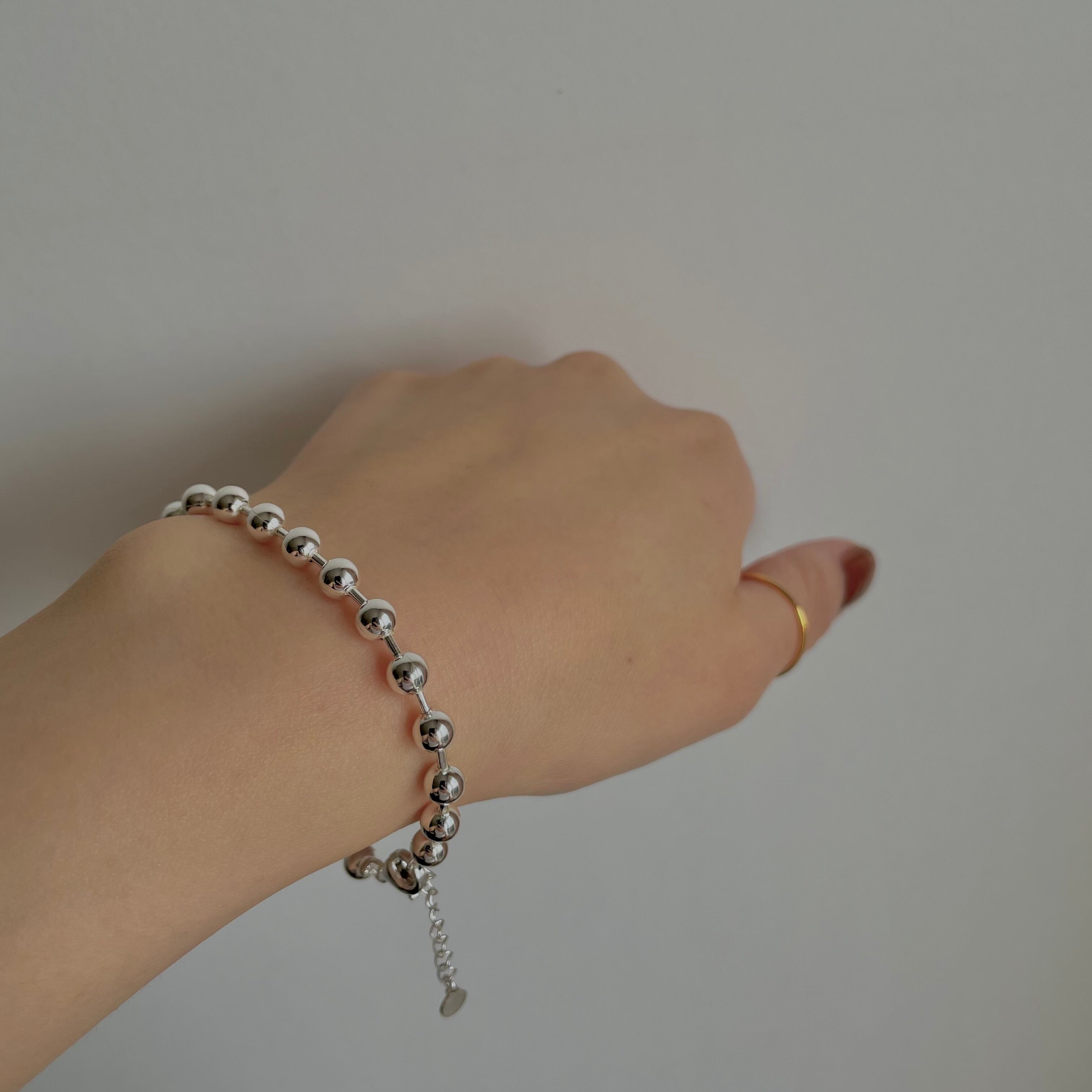 直径0.5mmのボールチェーンブレスレット。軽量でストレスなくご着用いただけます。
