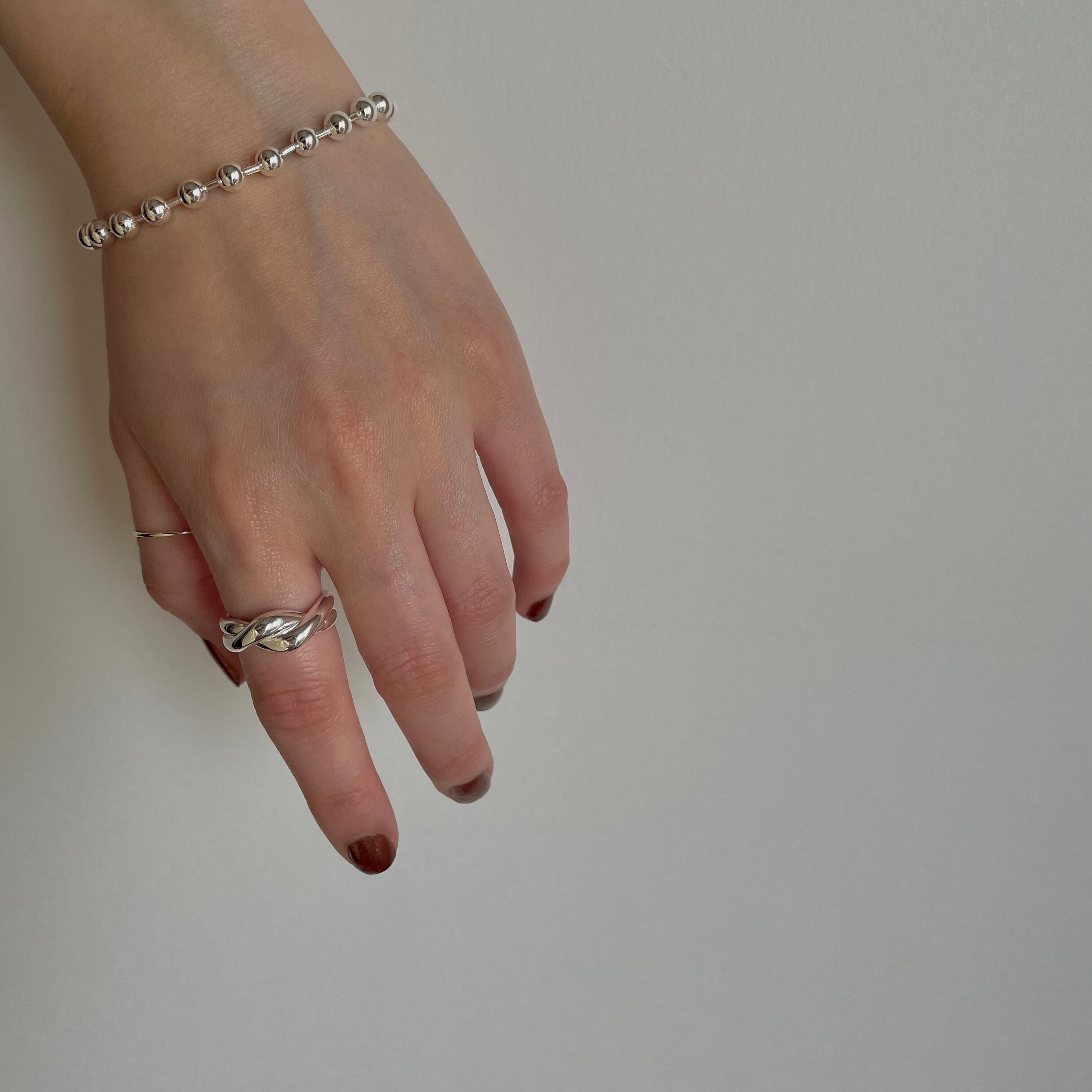 結び目をデザインしたリング。ボリュームリングですがノットの優しい雰囲気が指先を綺麗に見せてくれます。華奢なリングとのコーディネートがおすすめです。