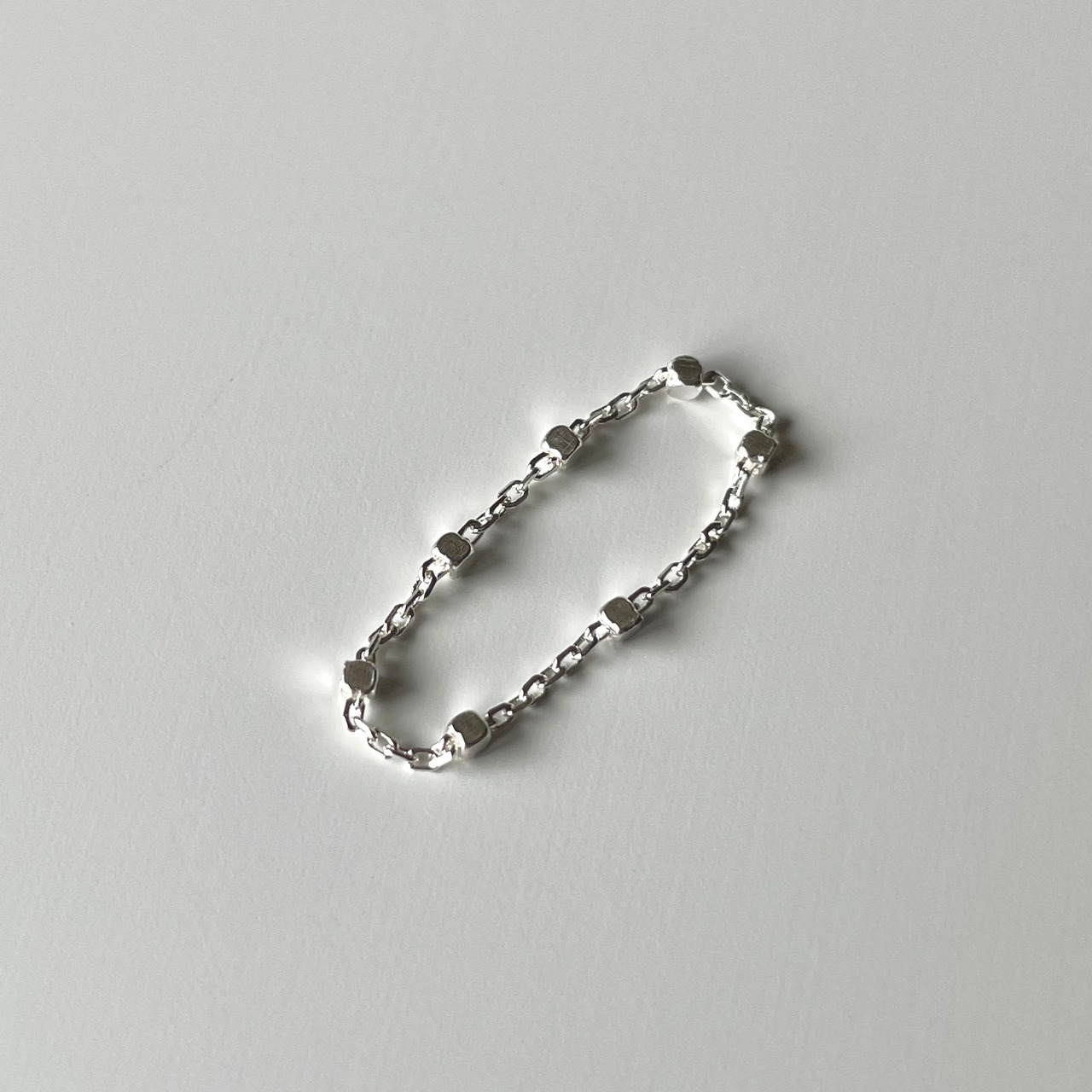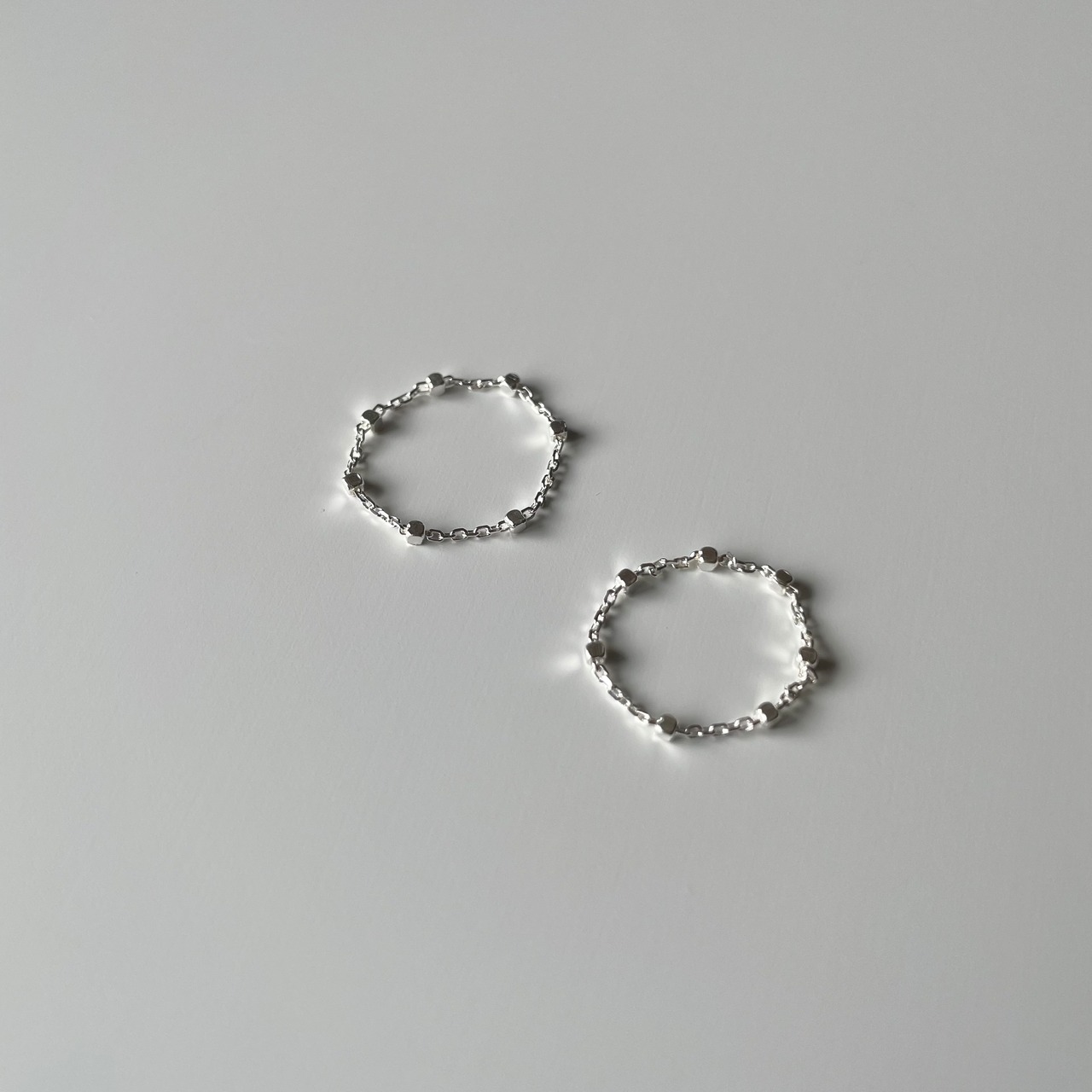 チェーンと粒の組み合わせが特徴的なチェーンリング。肌馴染みが良く、華奢な指先を演出してくれます。こちらは7号と9号をご用意しております。
