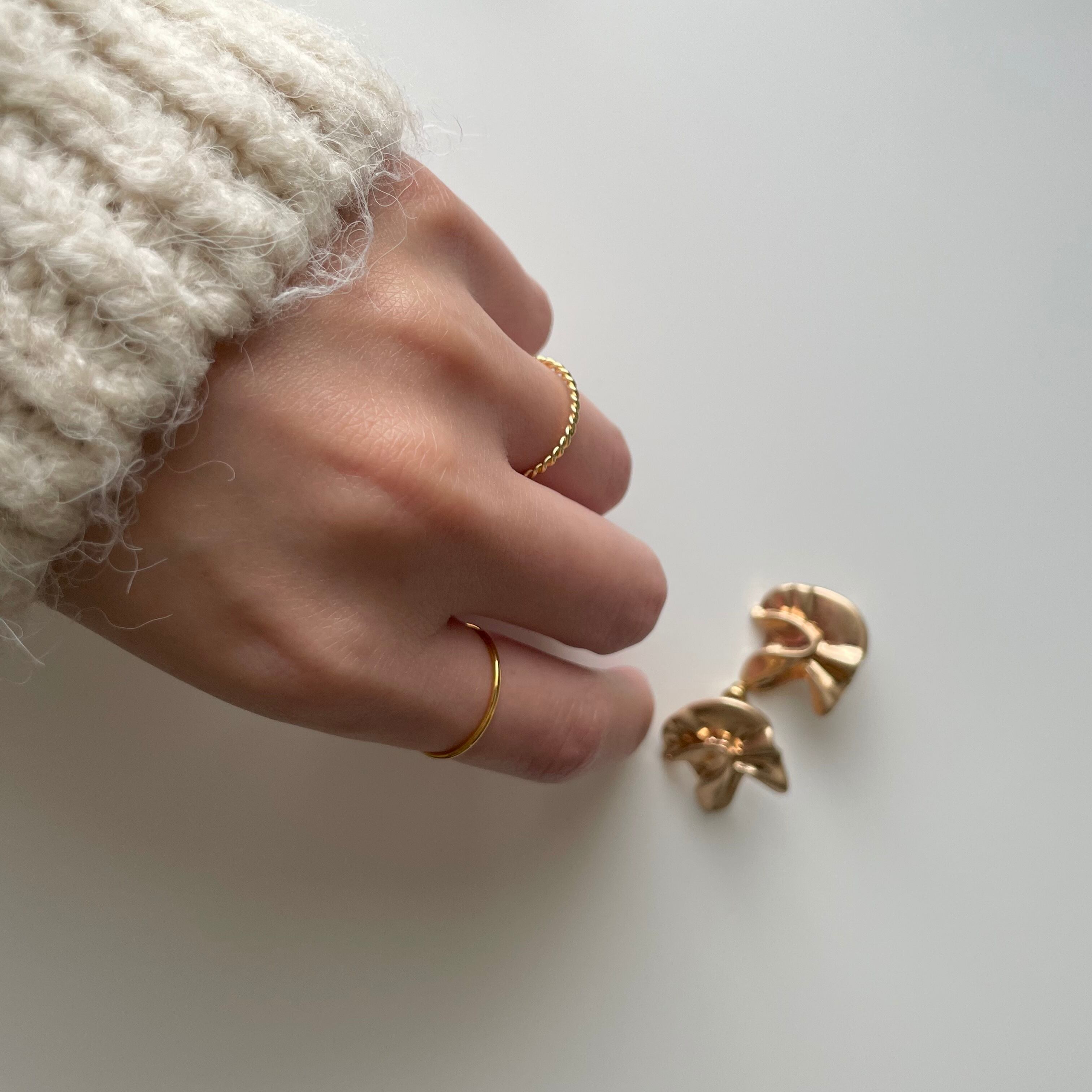 太さ1mmの華奢なツイストリング。お待ちのリングとの重ねづけもオススメです。こちらのリングは7号と9号をご用意しております。