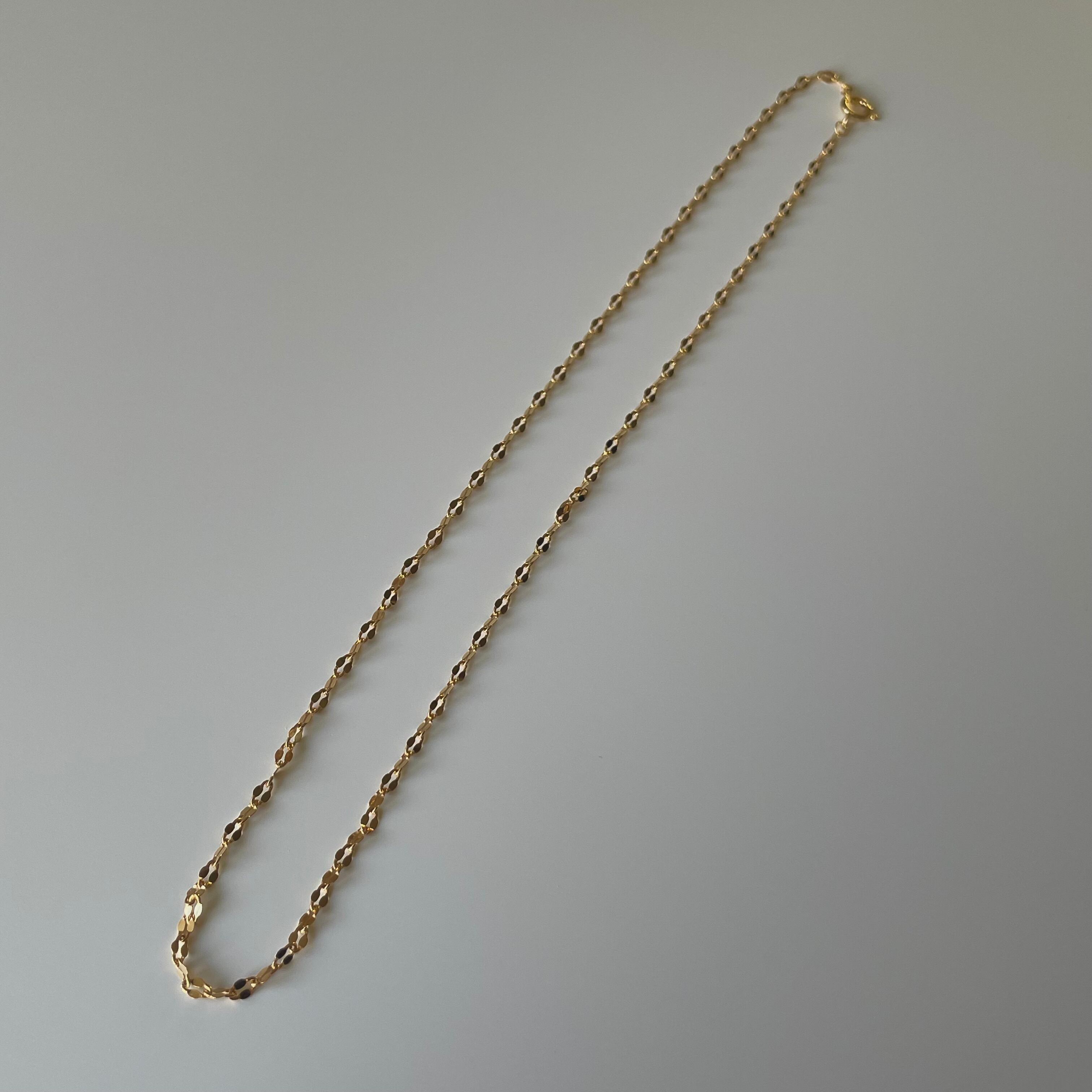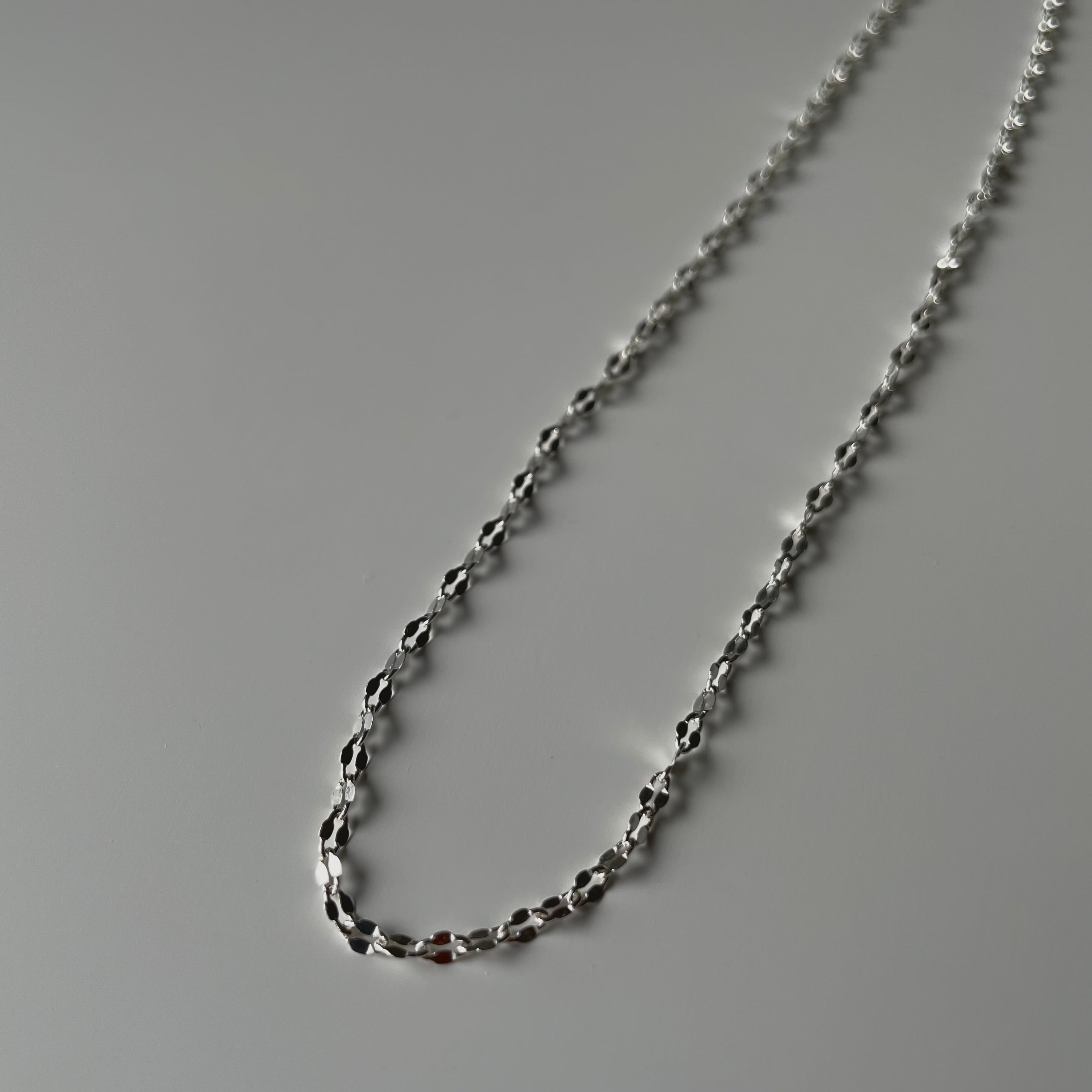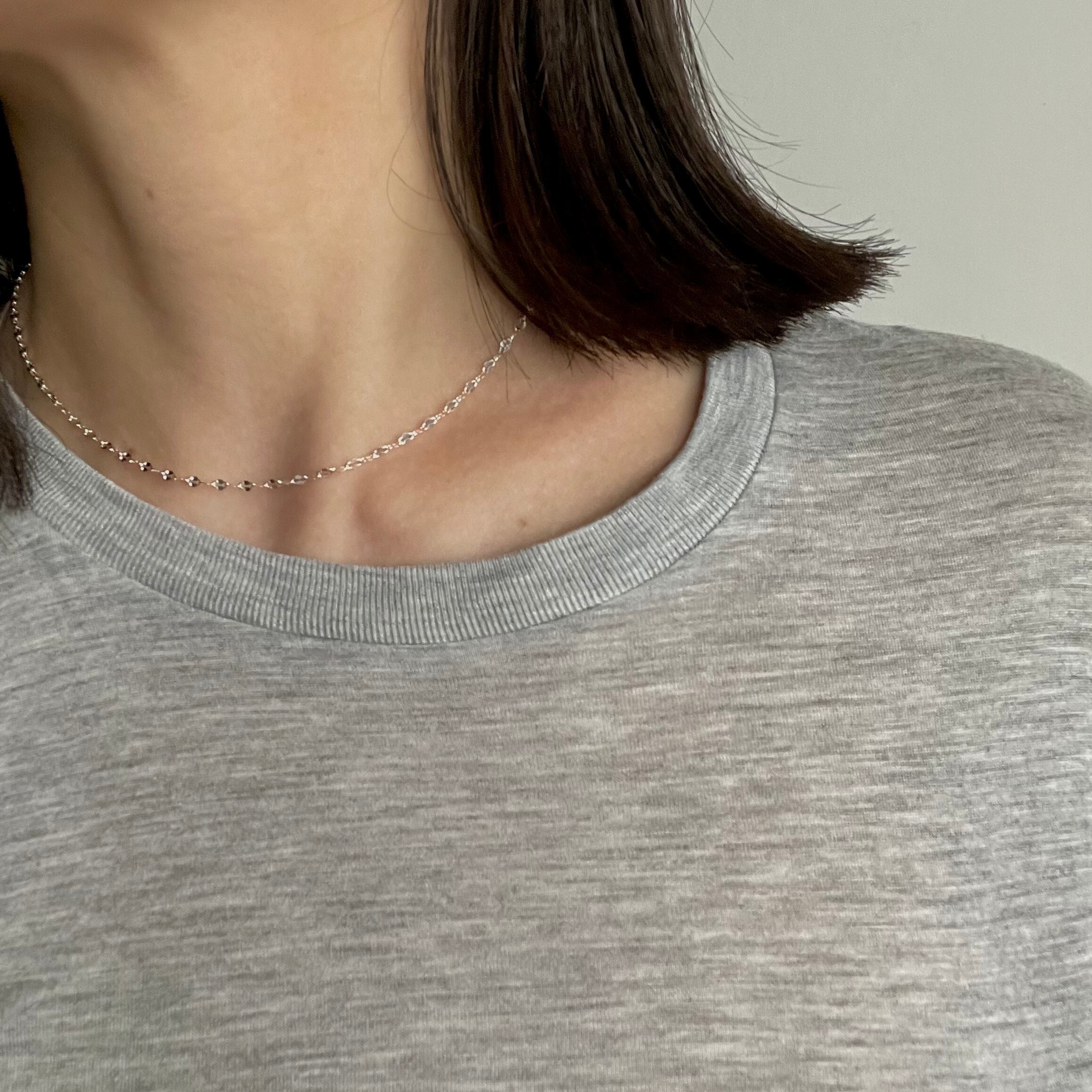 シンプルでありながら存在感のあるマリーナチェーンを使用したネックレス。光の反射で美しく輝くチェーンと上品なデザインをお楽しみいただけます。