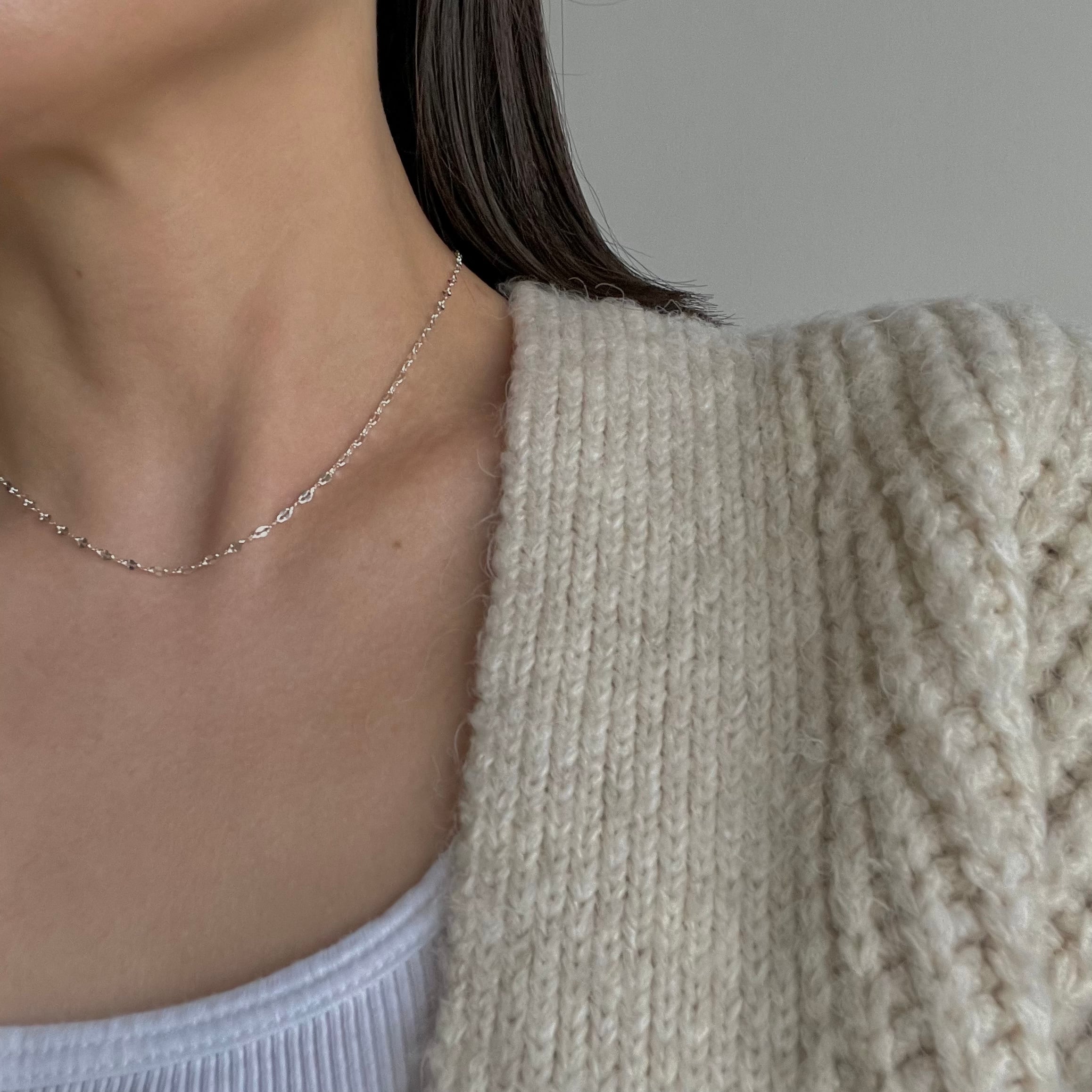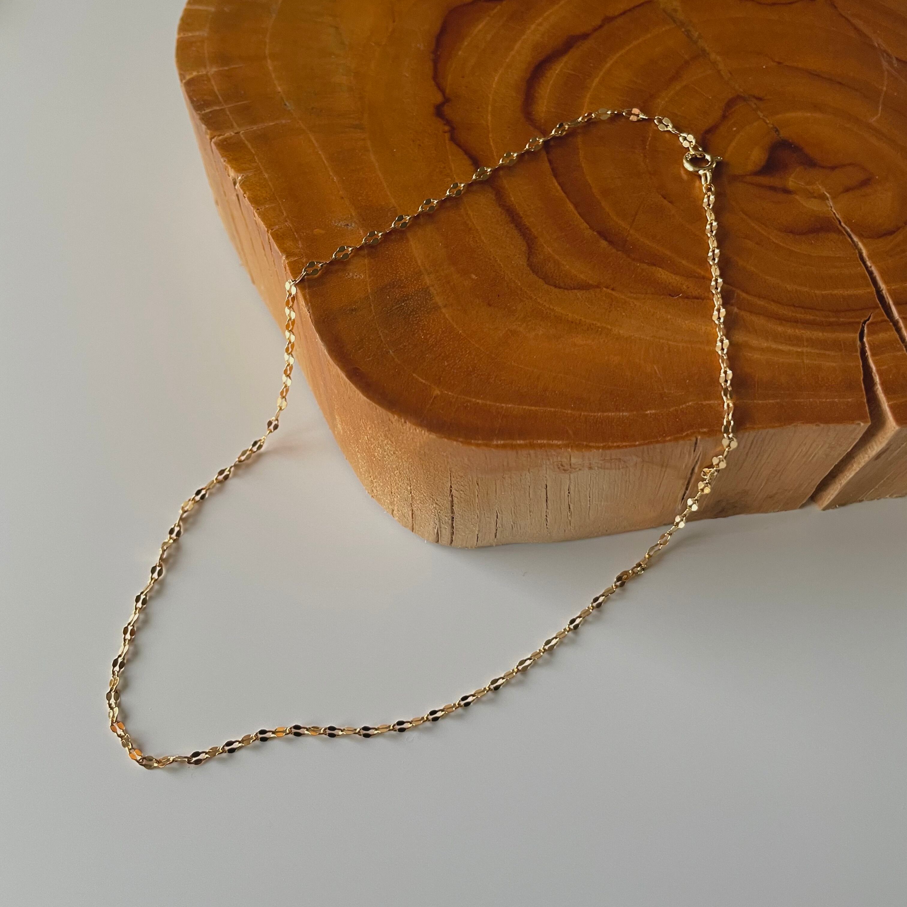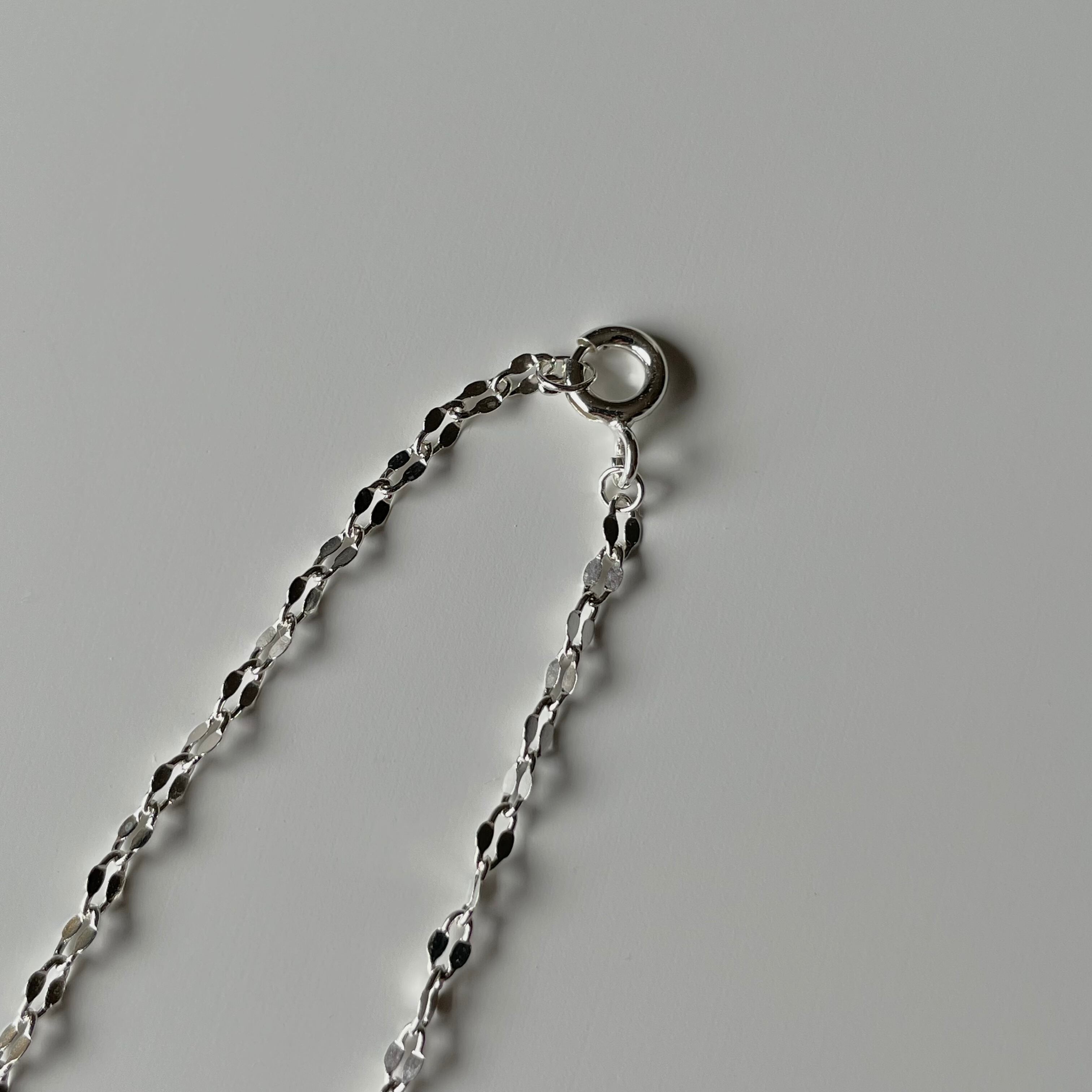 シンプルでありながら存在感のあるマリーナチェーンを使用したネックレス。光の反射で美しく輝くチェーンと上品なデザインをお楽しみいただけます。