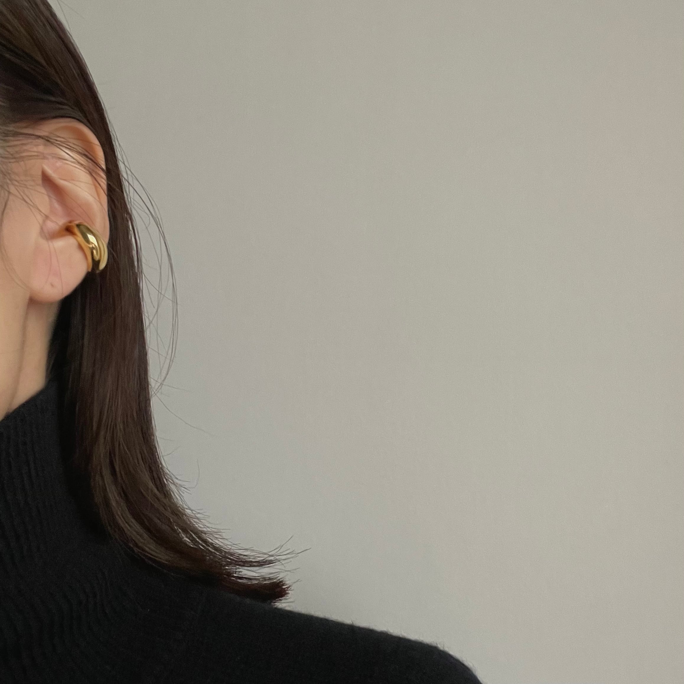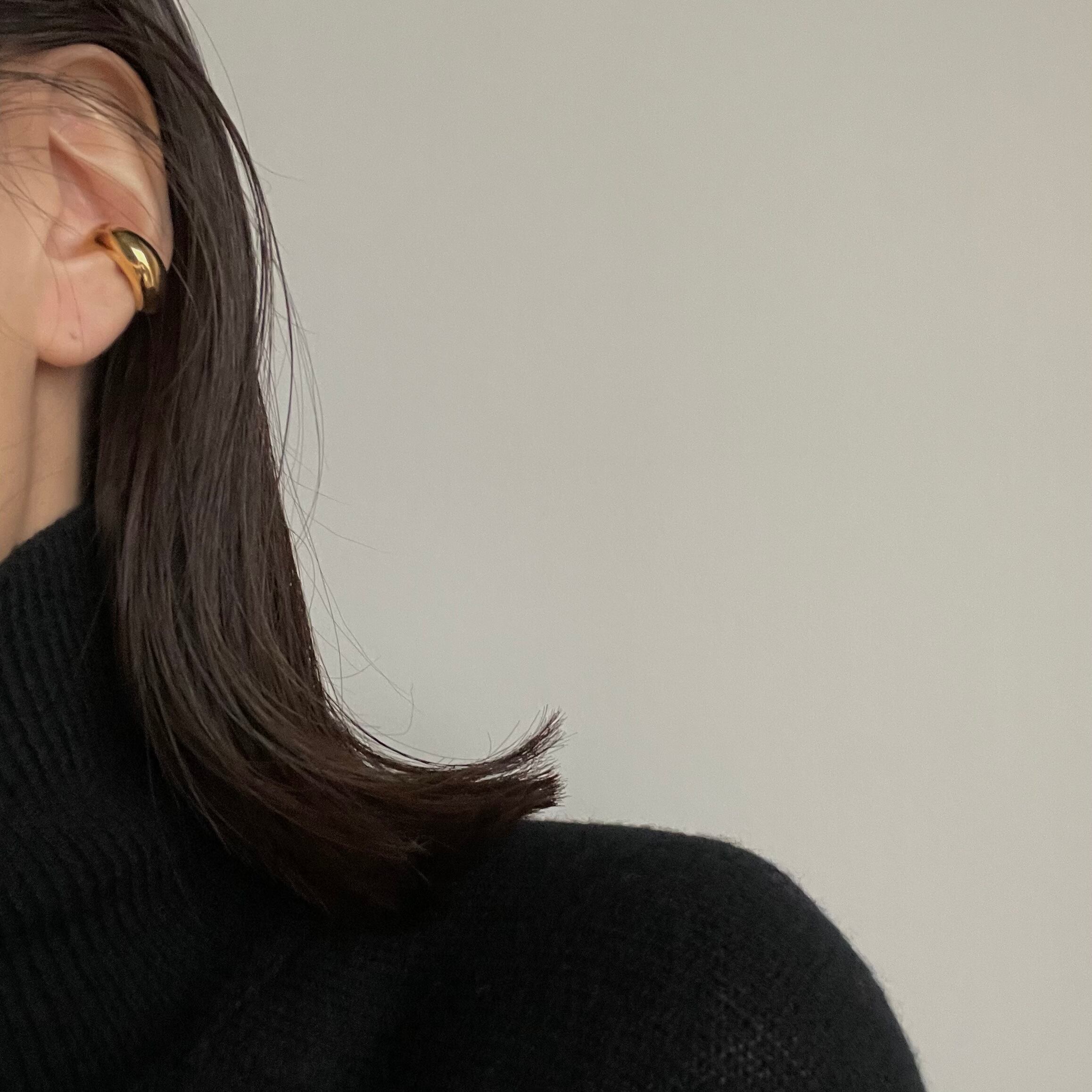 こちらのイヤリングはイヤカフとしてもご着用いただけます。(耳の厚めの方はイヤリングとしてのご着用時には圧が強い場合がございます。)