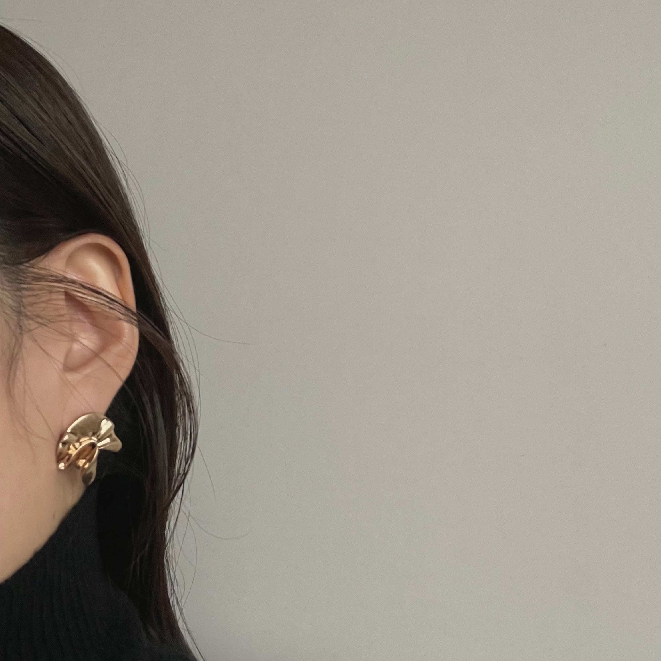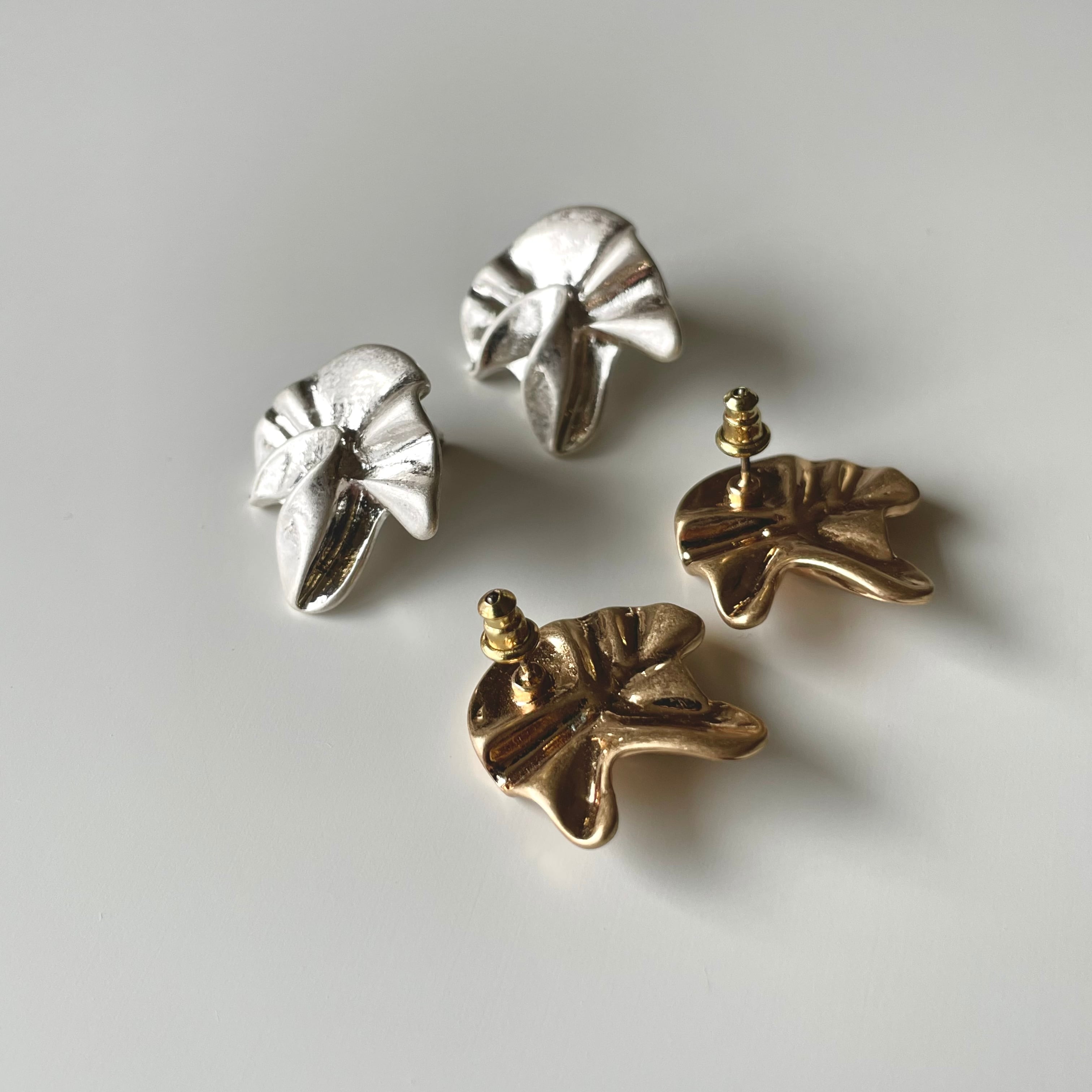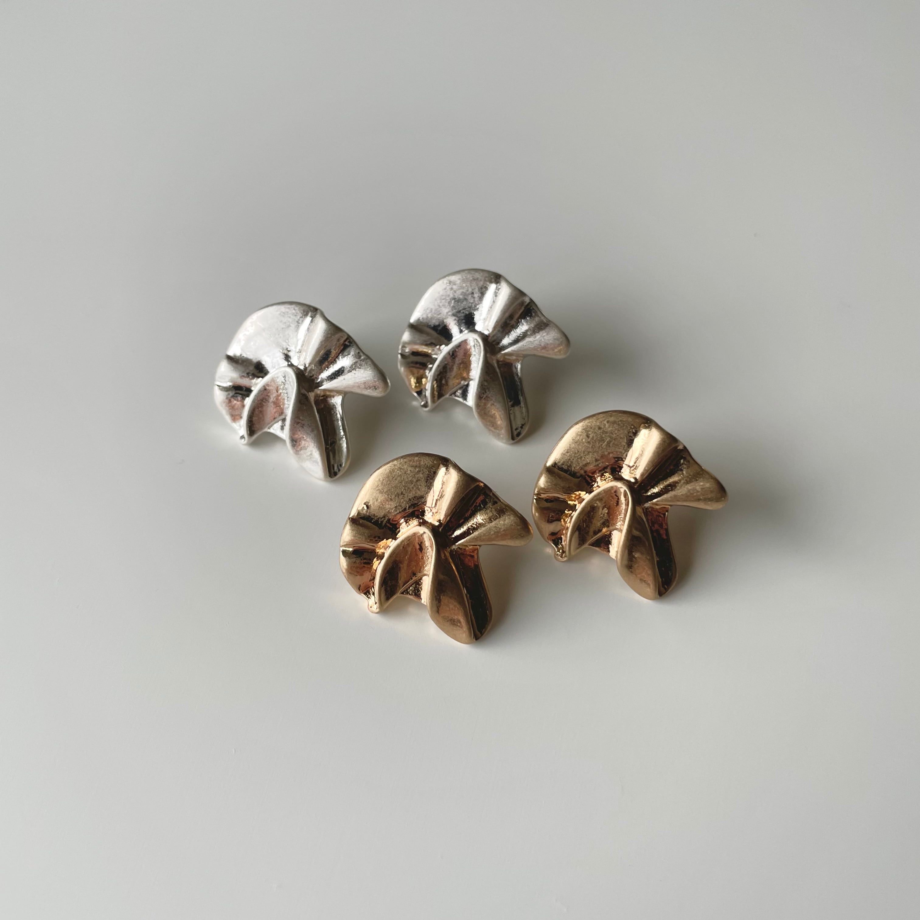 マット加工された表面とアシンメトリーデザインが個性的なピアス。雰囲気を出してくれるアクセサリーです。