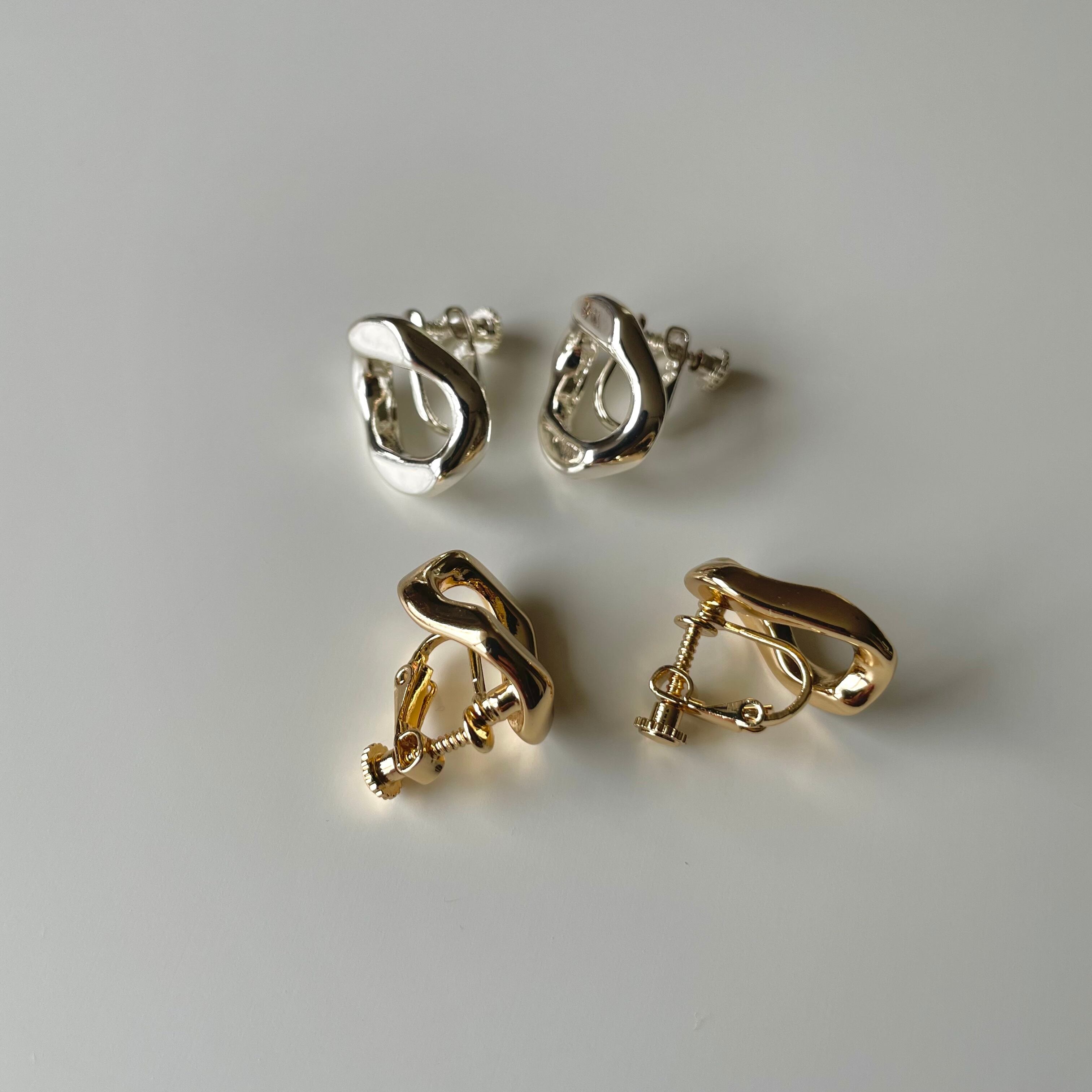 艶感のある表面と変形サークルが存在感を出してくれるイヤリング。顔周りを華やかにしてくれます。
