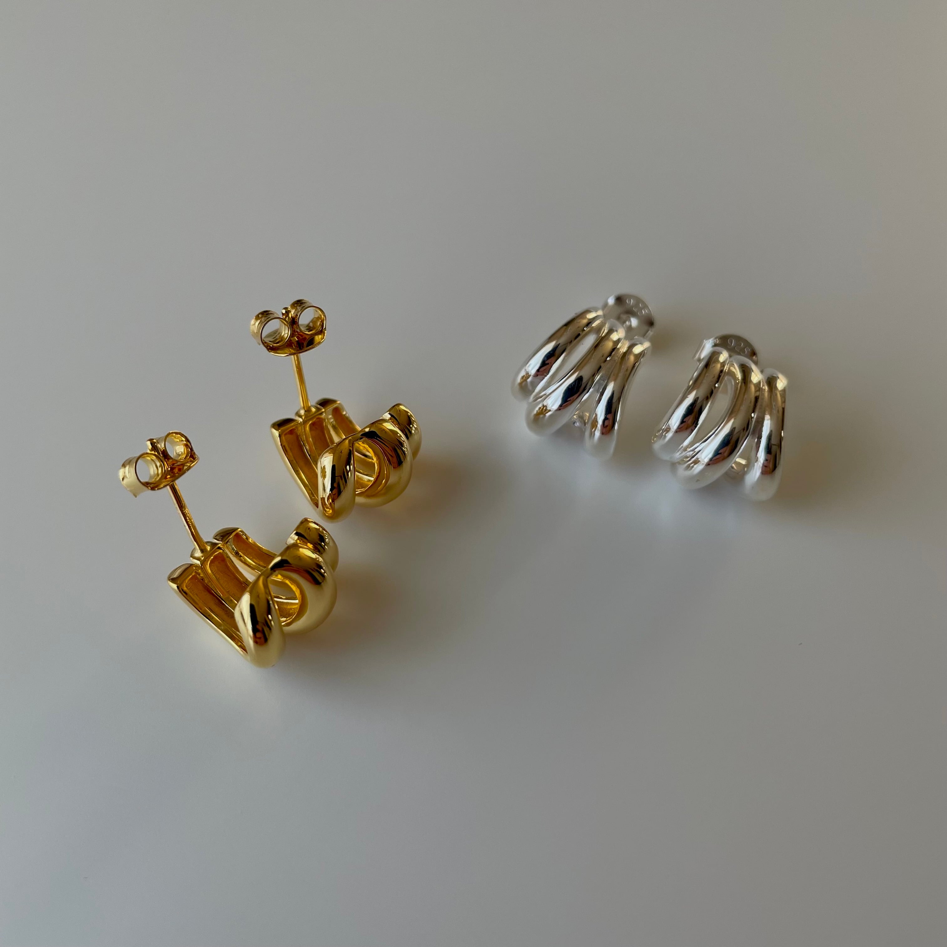 立体感と抜け感が綺麗なミニピアス。美シルエットな大人アクセサリーです。