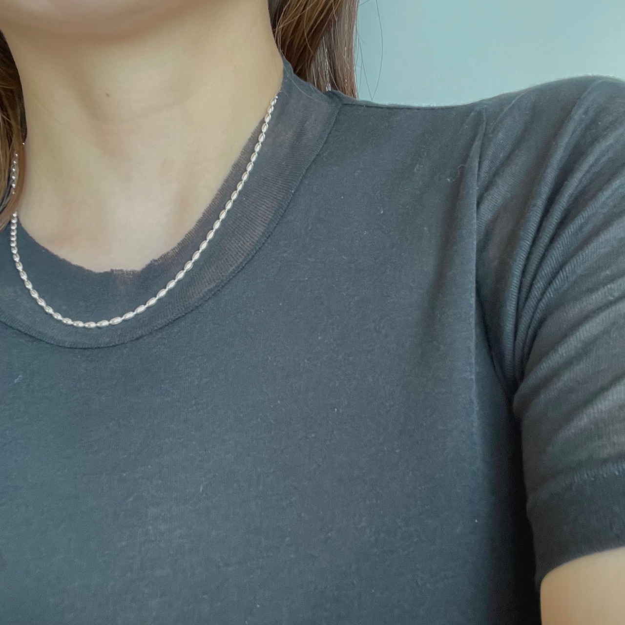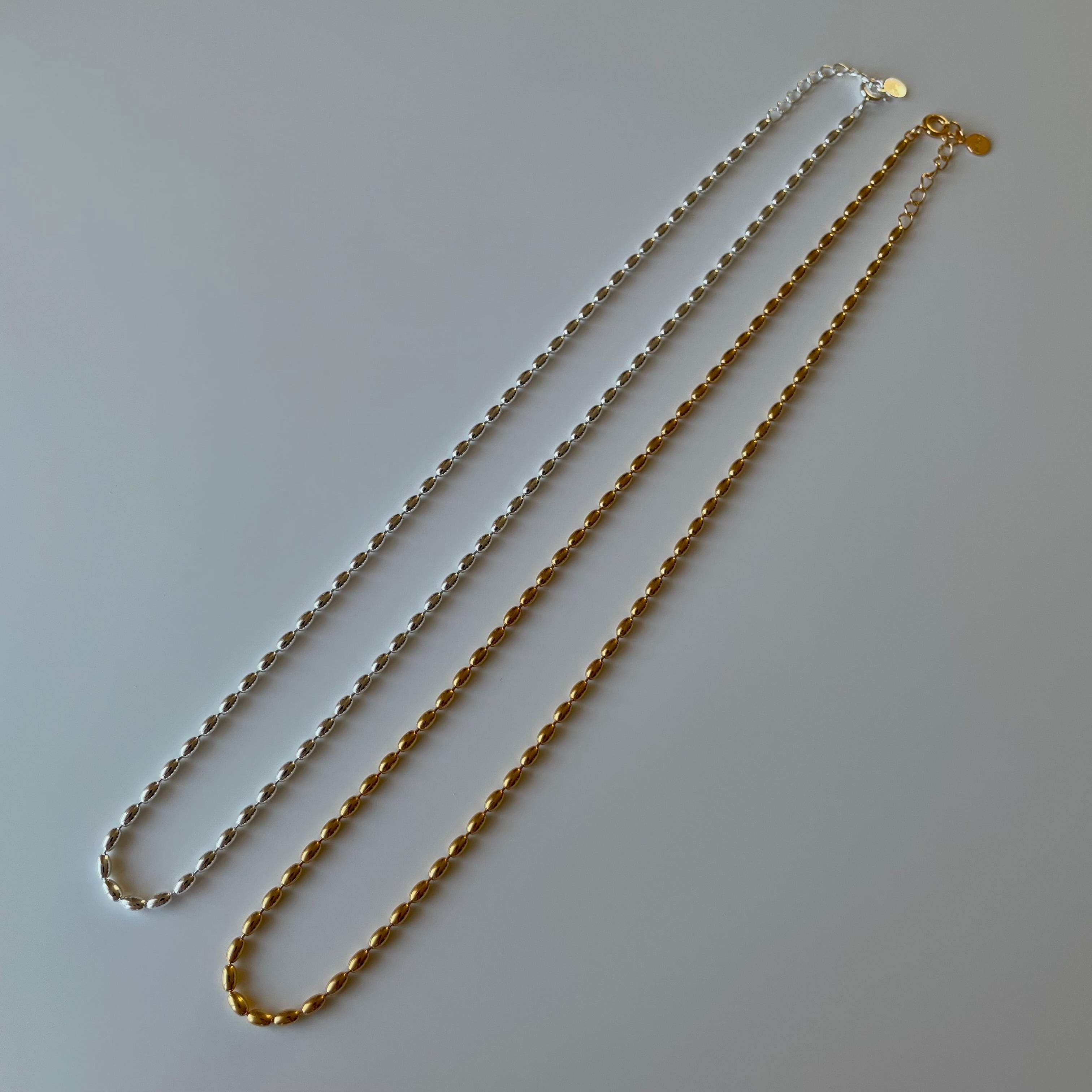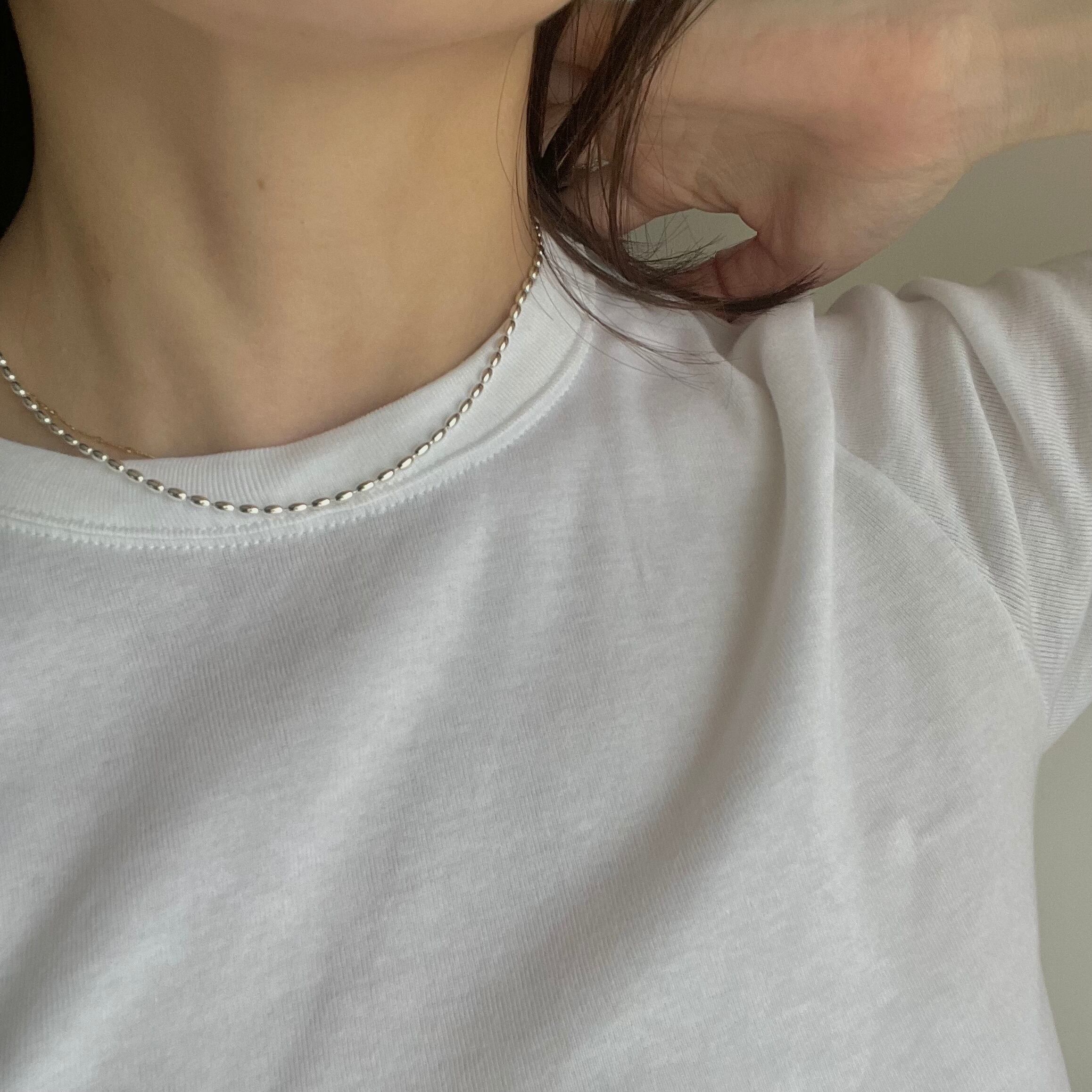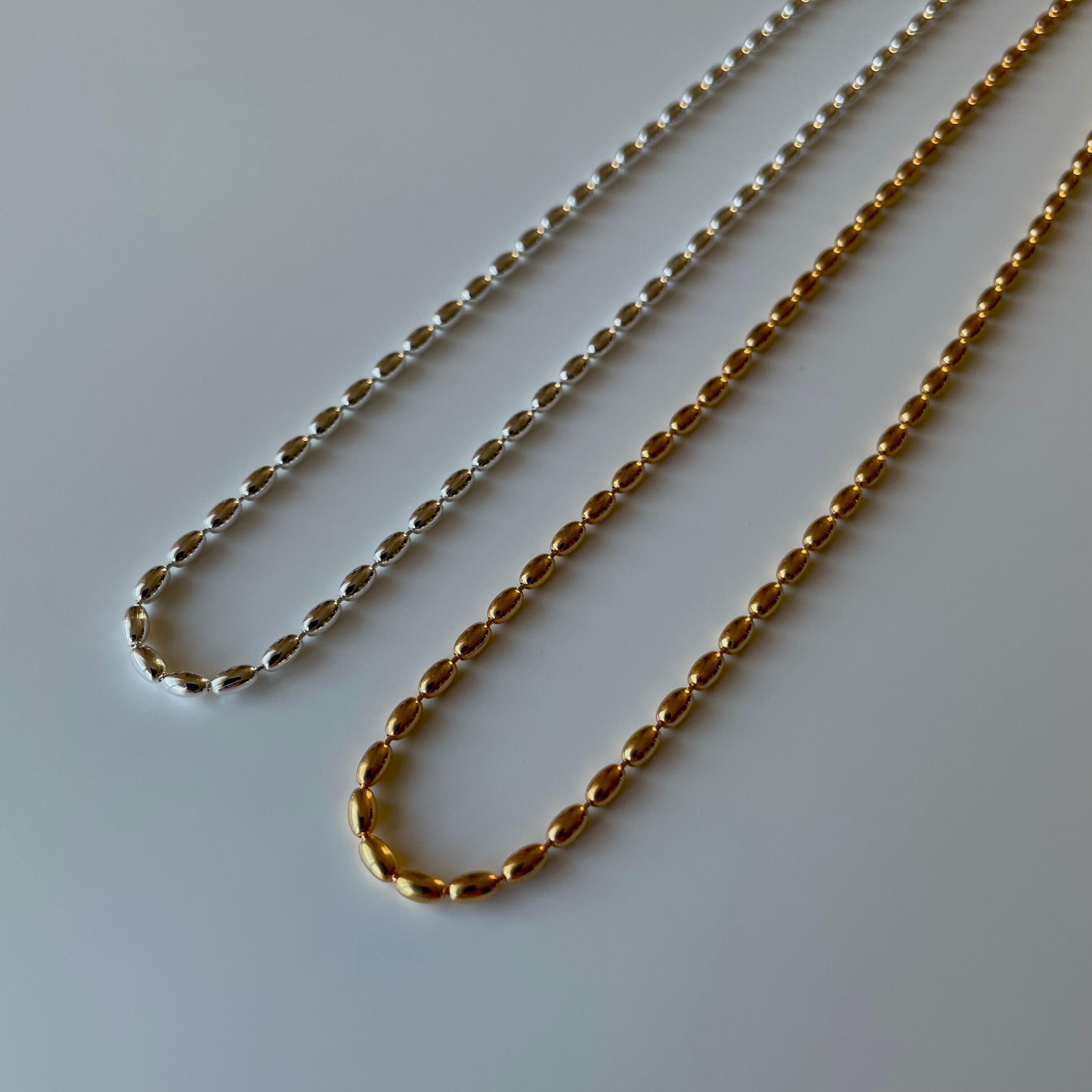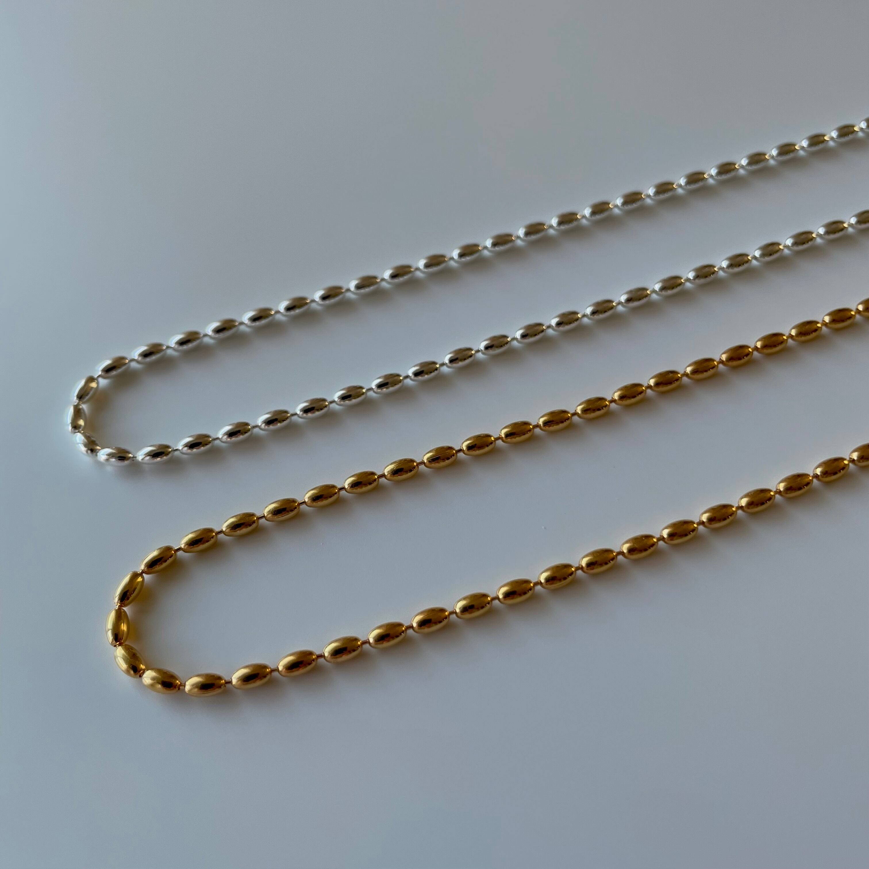 0.4mmの粒が連なったネックレス。小さな粒チェーンが控えめで様々なお洋服に合わせやすいベーシックなデザインが魅力です。