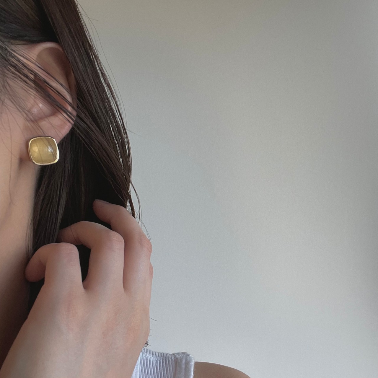 マーブルストーンとゴールドフレームを合わせた優しい雰囲気のイヤリング。