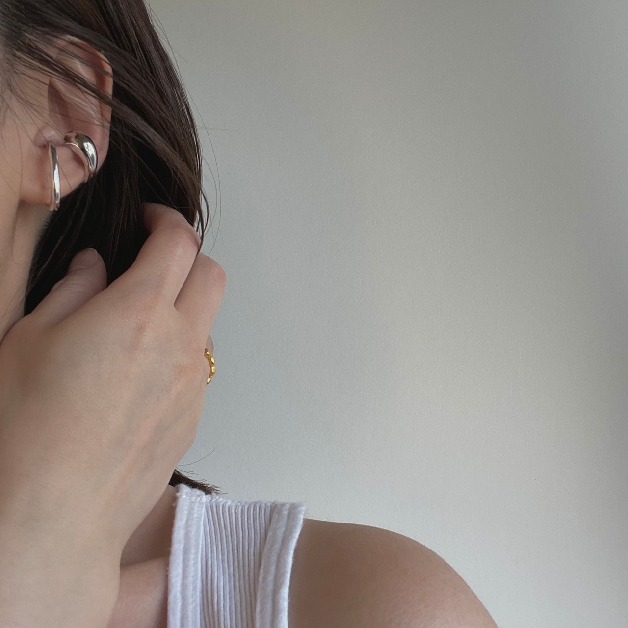 シンプルなイヤーカフセット。軟骨から引っ掛けてフープピアスのように見せる大きめタイプのトライしやすい形です。